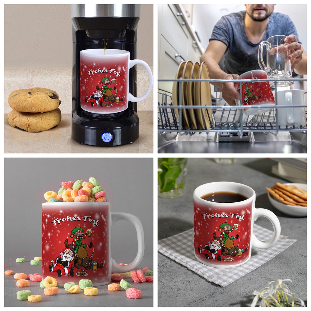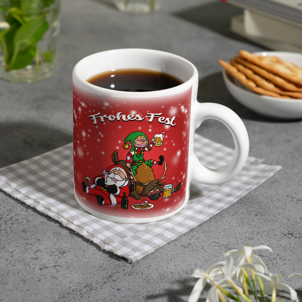Frohes Fest mit lustigem Weihnachtsmotiv Kaffeebecher