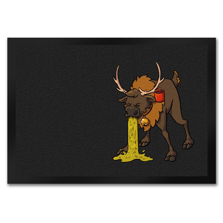 Fußmatte mit lustigem Weihnachtsmotiv - kotzendes Rentier mit Glühweintasse