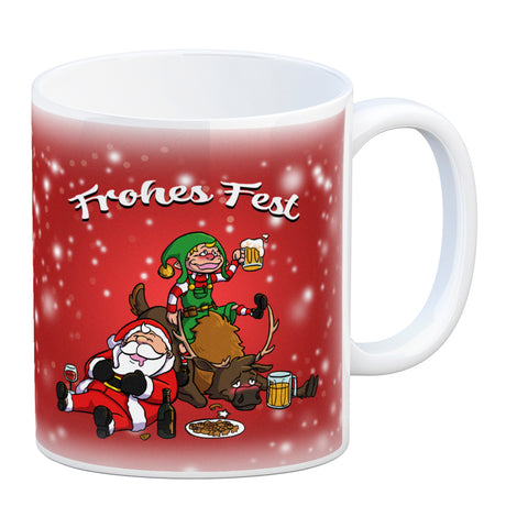 Frohes Fest mit lustigem Weihnachtsmotiv Kaffeebecher