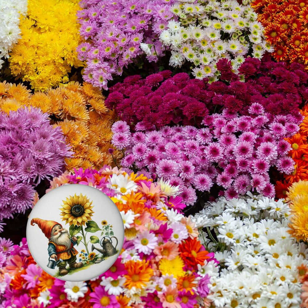 Gartenzwerge mit Blumen Magnet rund
