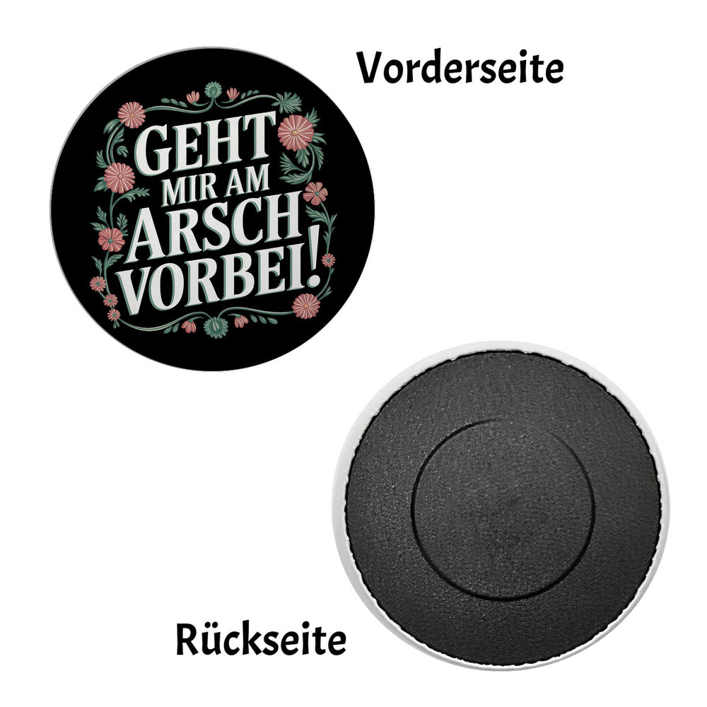 - Hast du genug von nervigen Kollegen oder Familienmitgliedern? Da kommt unser „Geht mir am Arsch vorbei“ Magnet wie gerufen! Die perfekte Kombination aus humorvoller Botschaft und buntem floralen Design auf schwarzem Hintergrund lässt jeden Kühlschrank oder Magnettafel strahlen. Ein lustiger Hingucker, der ein klares Statement setzt!