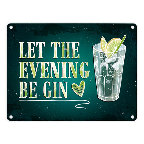 Gin Metallschild mit Alkohol Motiv und Spruch: Let the evening be gin