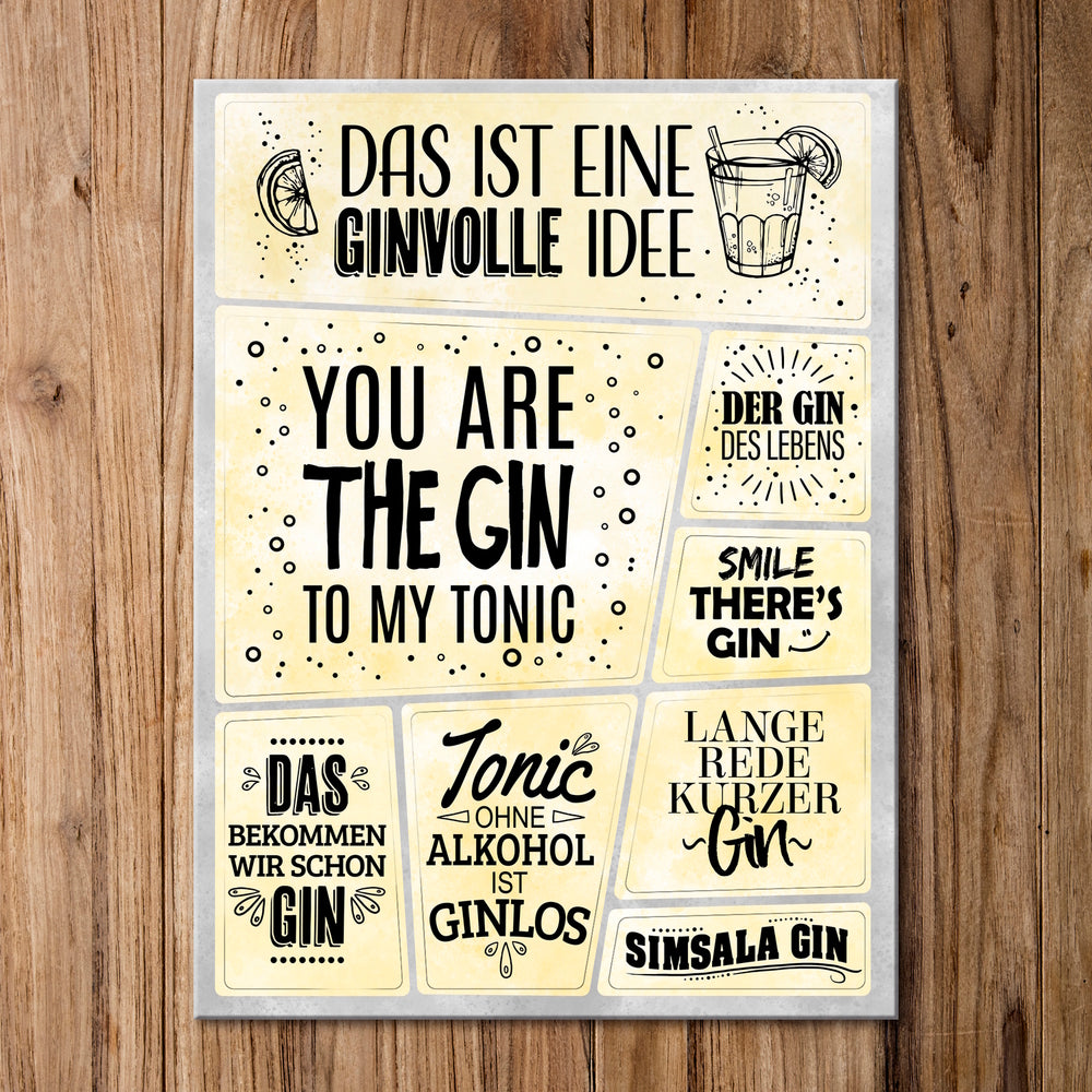 Acht coole Magnete über Gin für den Kühlschrank. Hinweise: