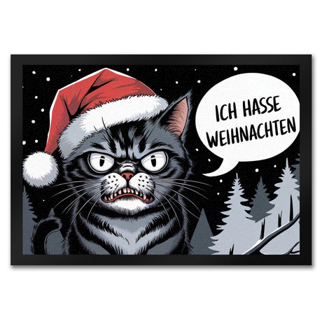 Grimmige Katze mit Weihnachtsmütze - Ich hasse Weihnachten Fußmatte in 35x50 cm
