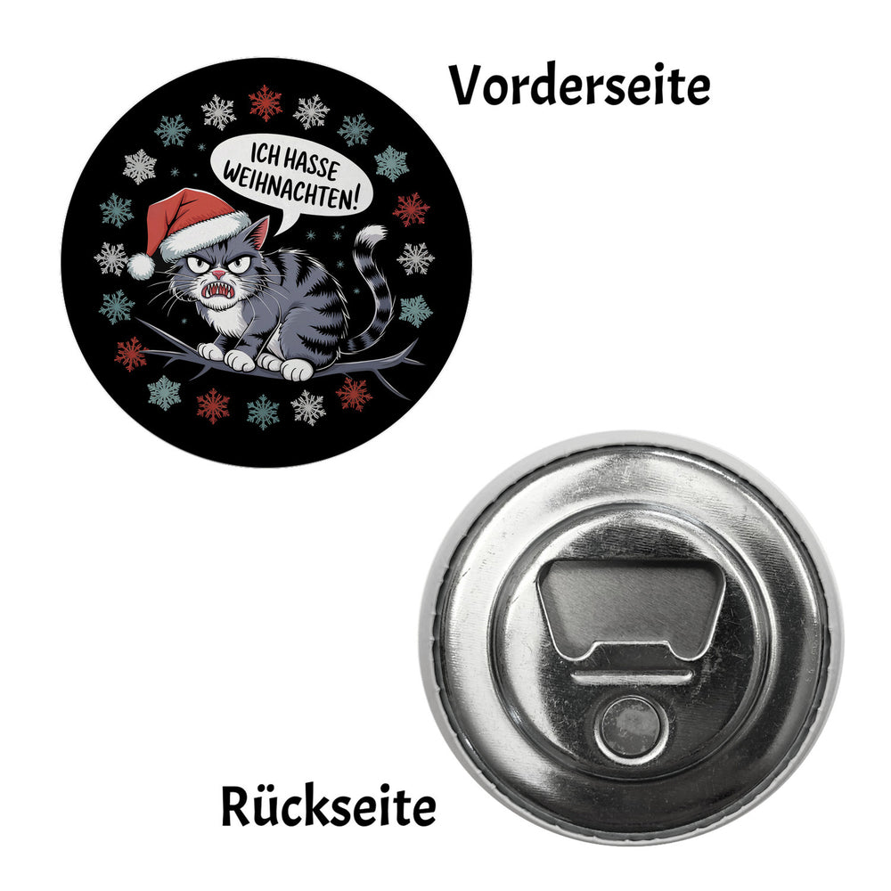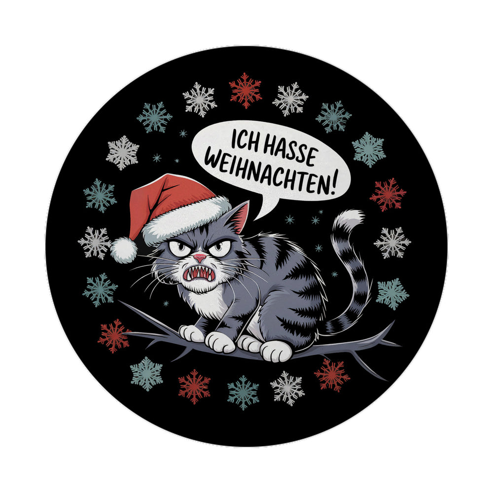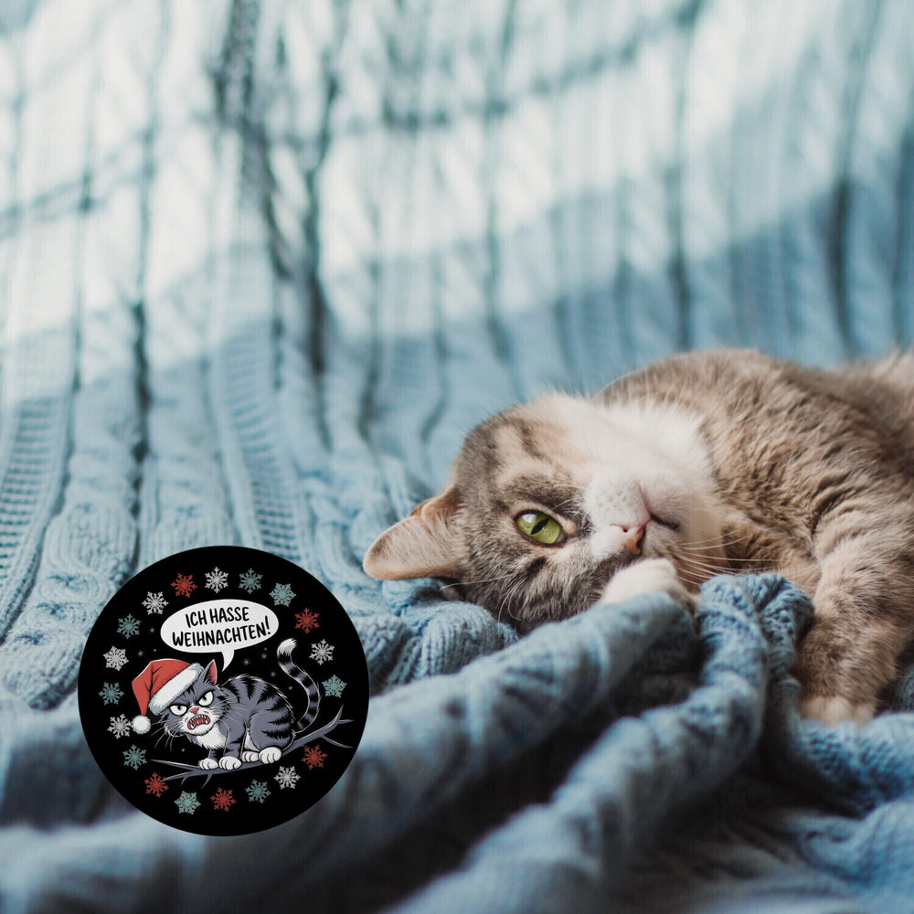 - 1x Grimmige Katze mit Weihnachtsmütze - Ich hasse Weihnachten Magnet in der gewählten Ausführung