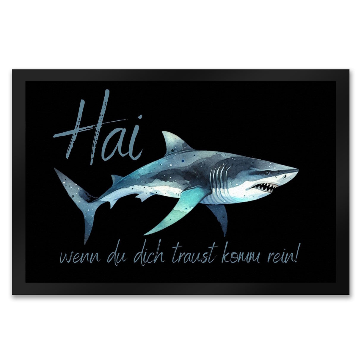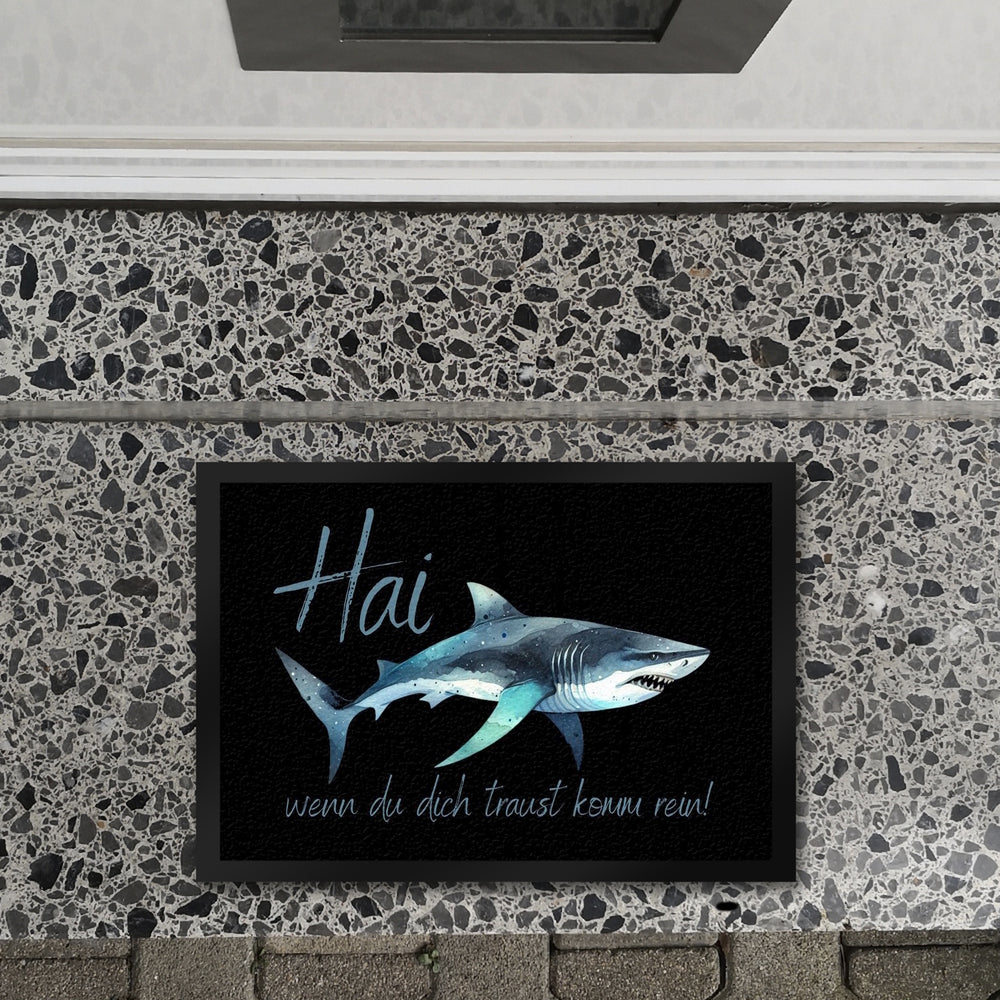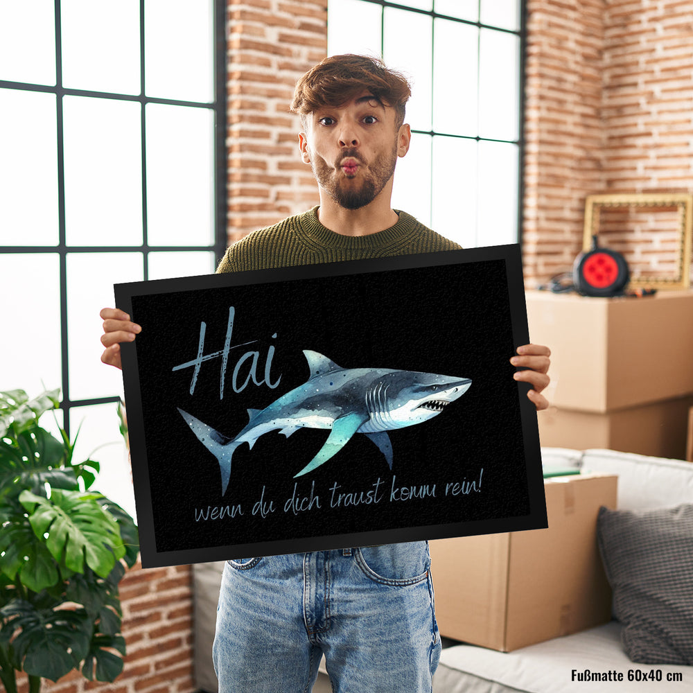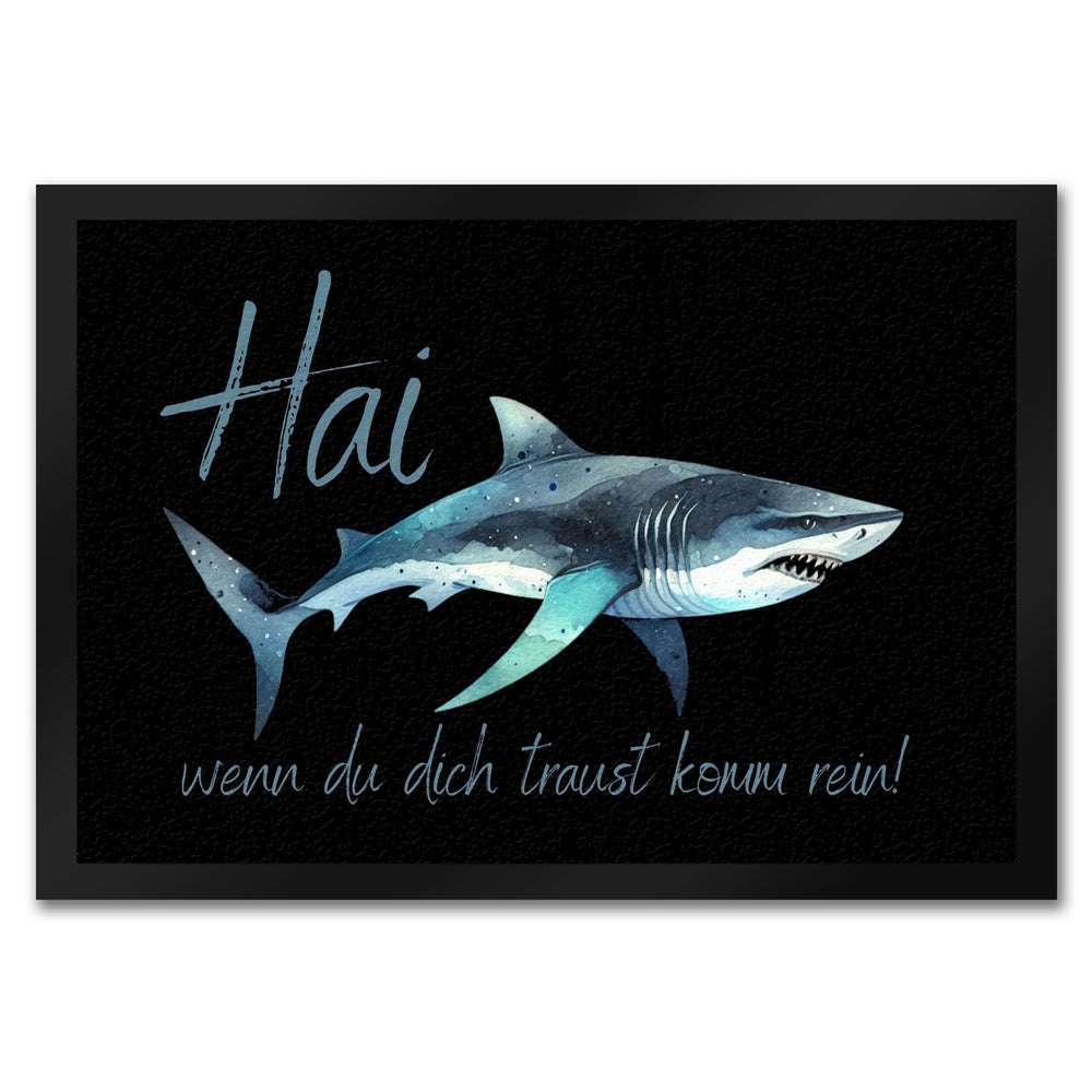Hai Fußmatte in 35x50 cm ohne Rand mit Spruch wenn du dich traust komm rein