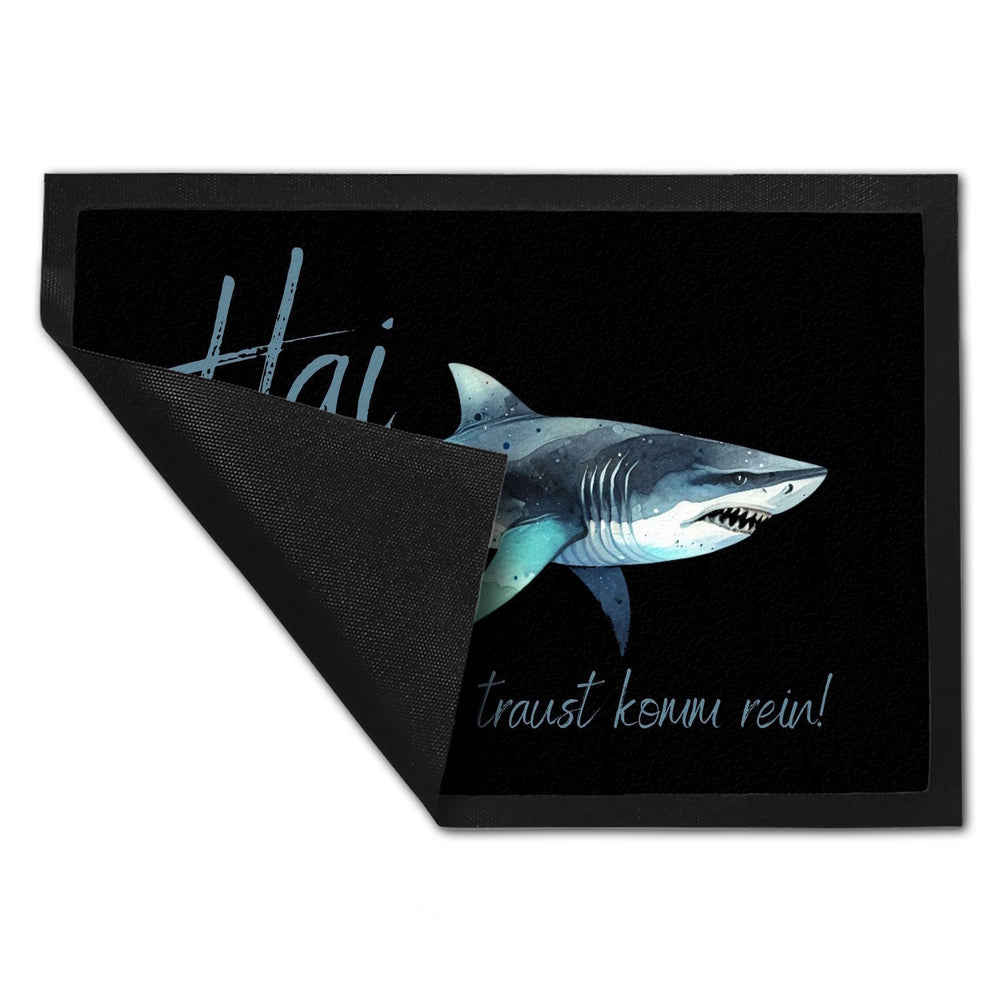 - Hi und Hallo, Haifisch-Fans! Schwimmt euch der Alltag auch manchmal davon? Holt euch den Ozean nach Hause mit unserer Hai Fußmatte! Dieses praktische Schmuckstück mit einem schwimmenden Haifisch begrüßt Freunde und Postboten - aber Achtung, Landratten: "Hai wenn du dich traust komm rein!"