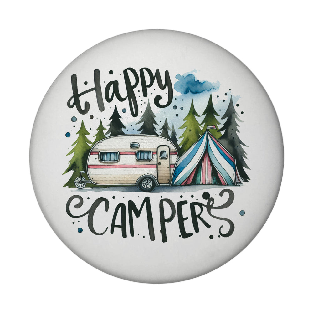 Campingwagen Magnet rund mit Spruch Happy Campers