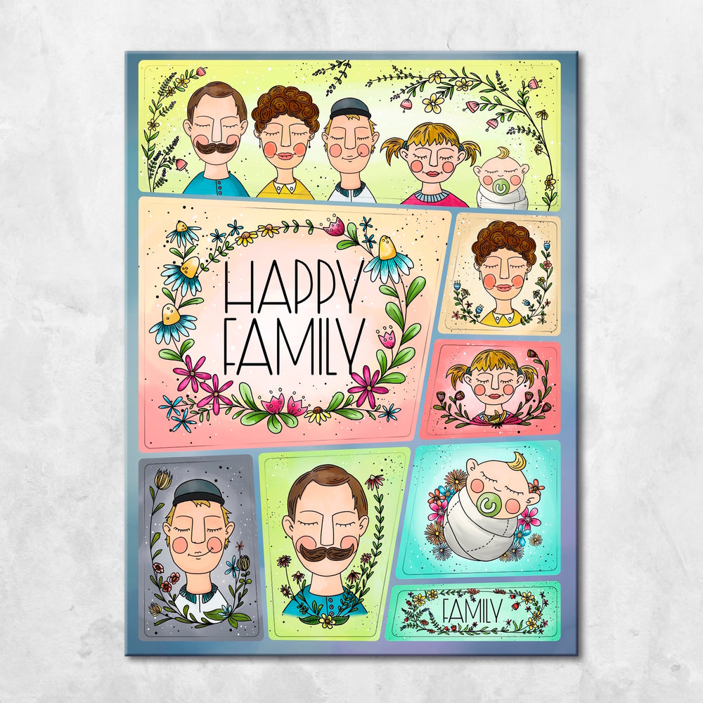 Acht liebevoll gestaltete Familienmotive für den Kühlschrank. Hinweise: