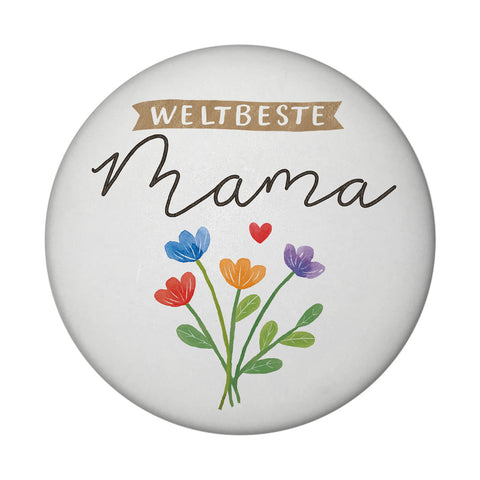 Blumenstrauß Magnet rund mit Spruch Weltbeste Mama