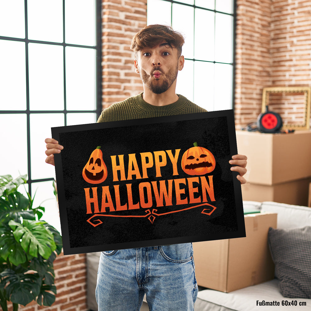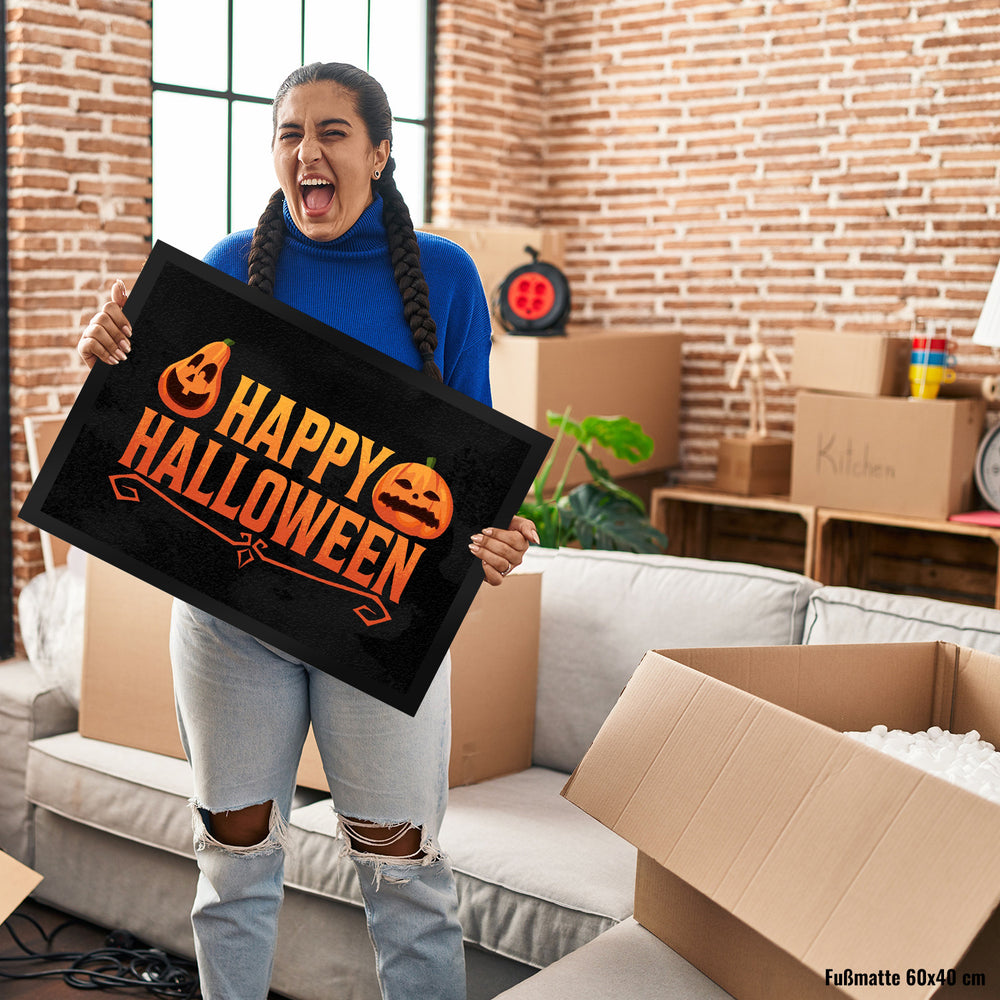 Happy Halloween Fußmatte mit Kürbis Motiv