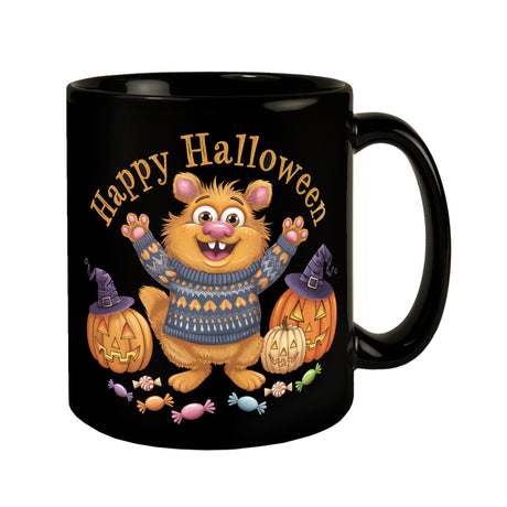 Happy Halloween Kaffeebecher mit schwarzer Fledermaus-Katze
