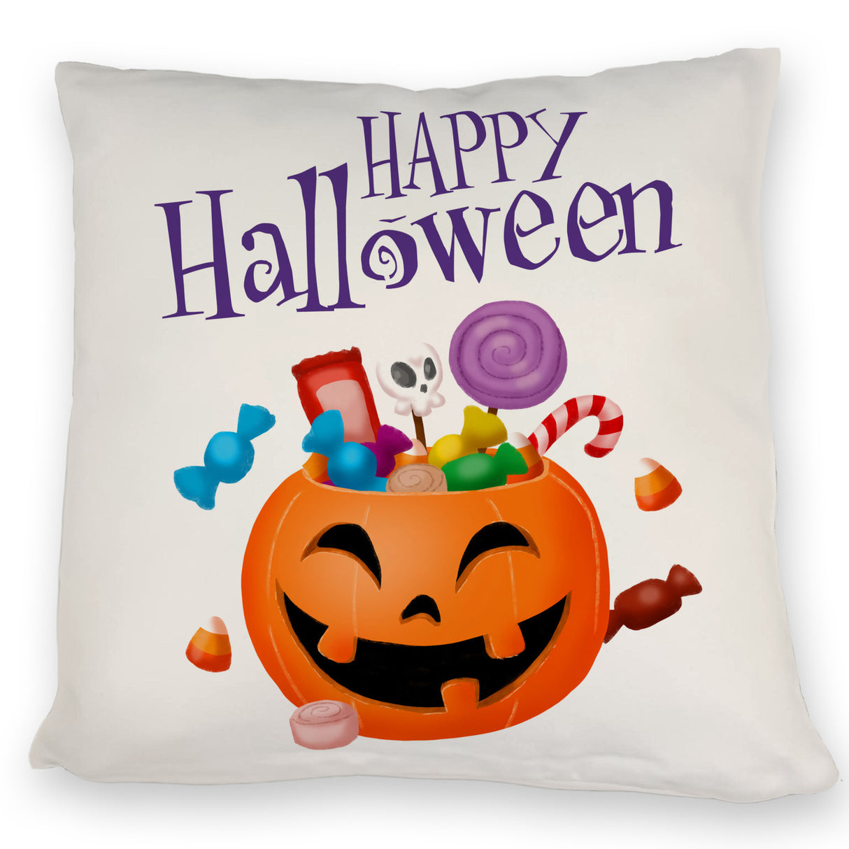 - Halloween steht vor der Tür und es ist an der Zeit, sich zu gruseln! Mit dem niedlichen Kissen mit Happy Halloween Motiv können Sie sich auf die schaurigsten Nächte des Jahres einstimmen. Es zeigt einen Kürbis, gefüllt mit Süßigkeiten - wer liebt das nicht? Der niedliche Artikel hält jede Party in Schwung und verbreitet Stimmung unter den Kleinen bei Ihrer Feier zu Halloween.