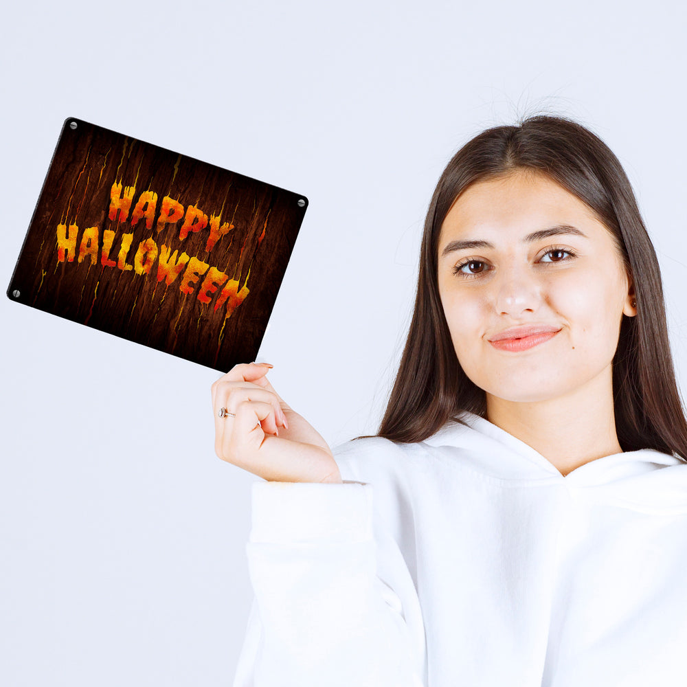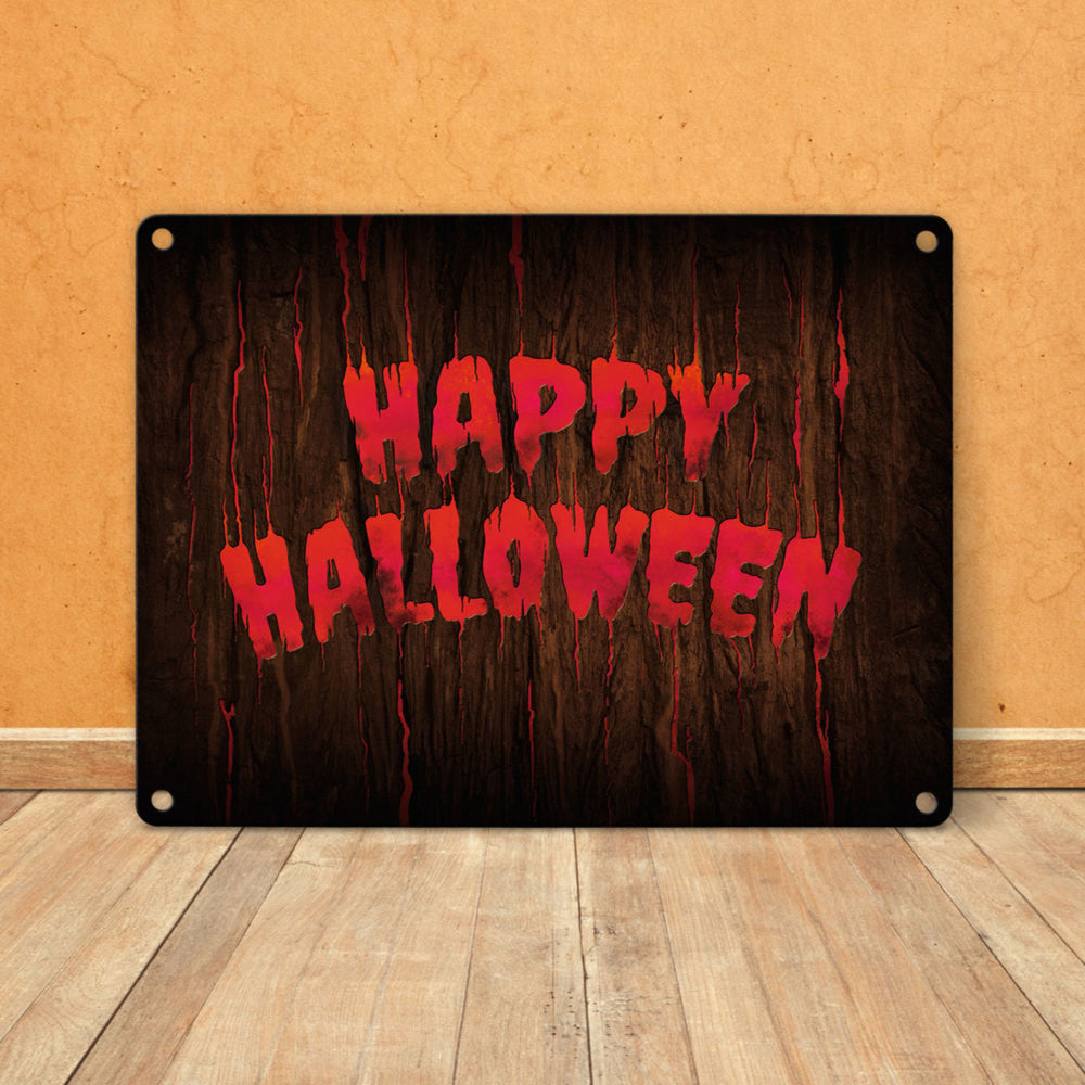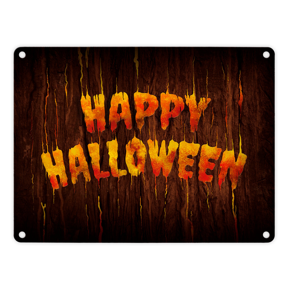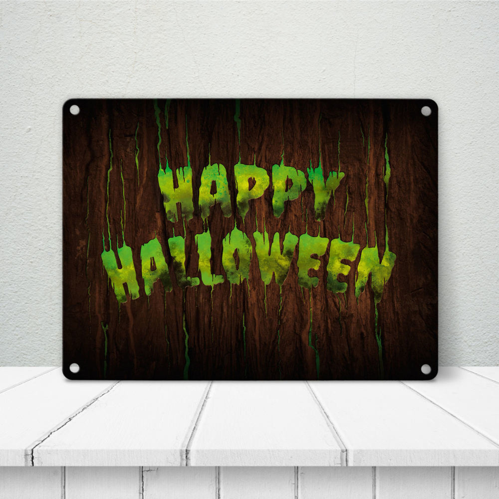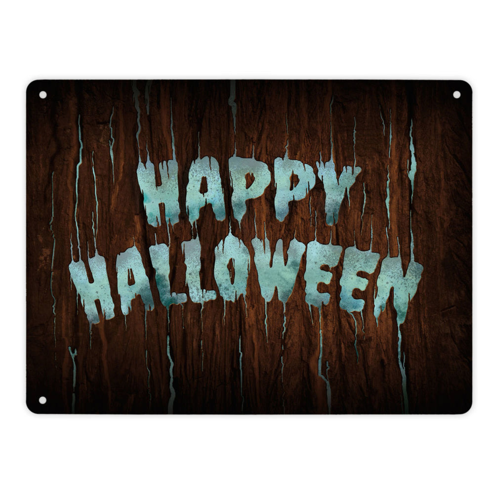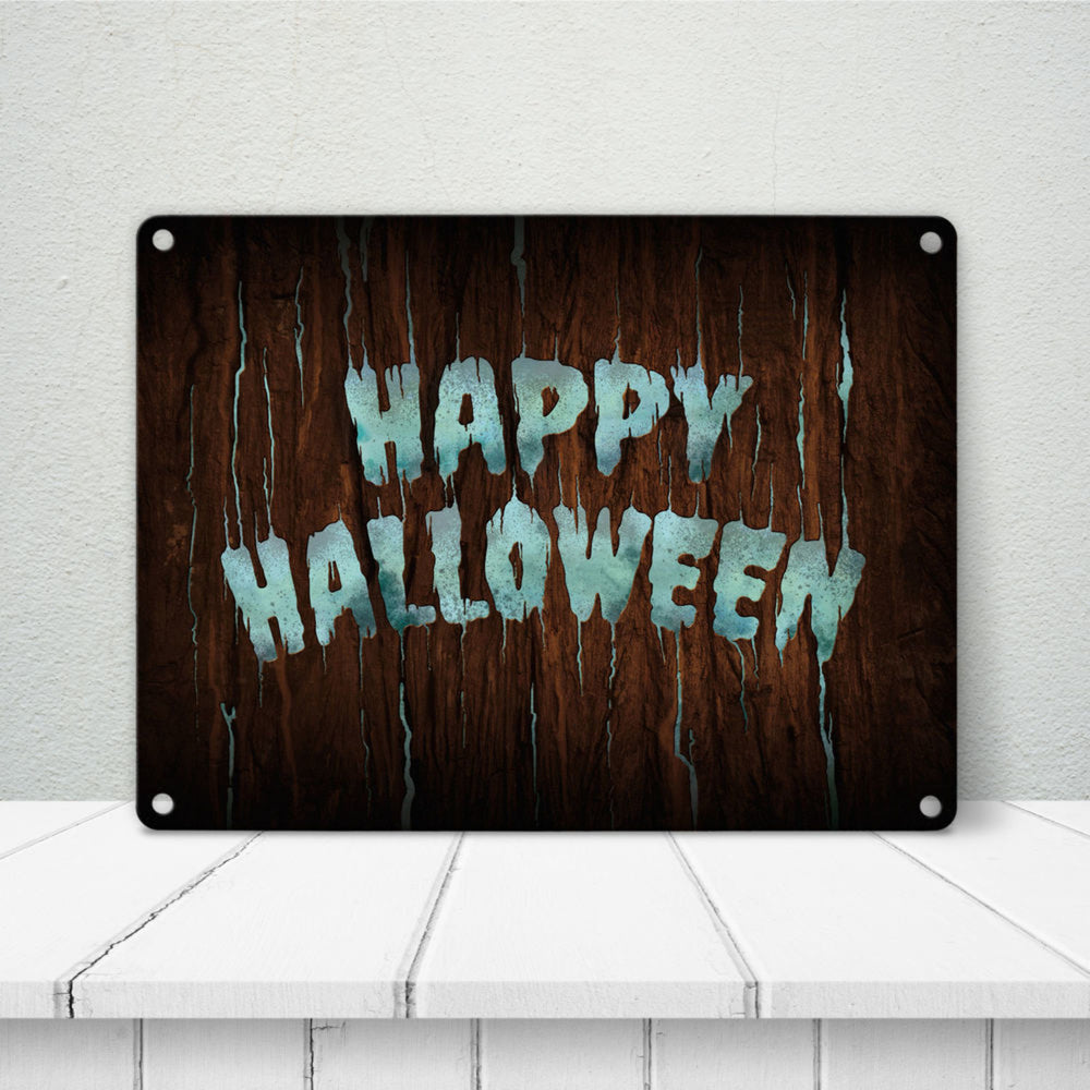 Happy Halloween Metallschild in Holz Optik Haustüre Türe Nacht Angst Hexe