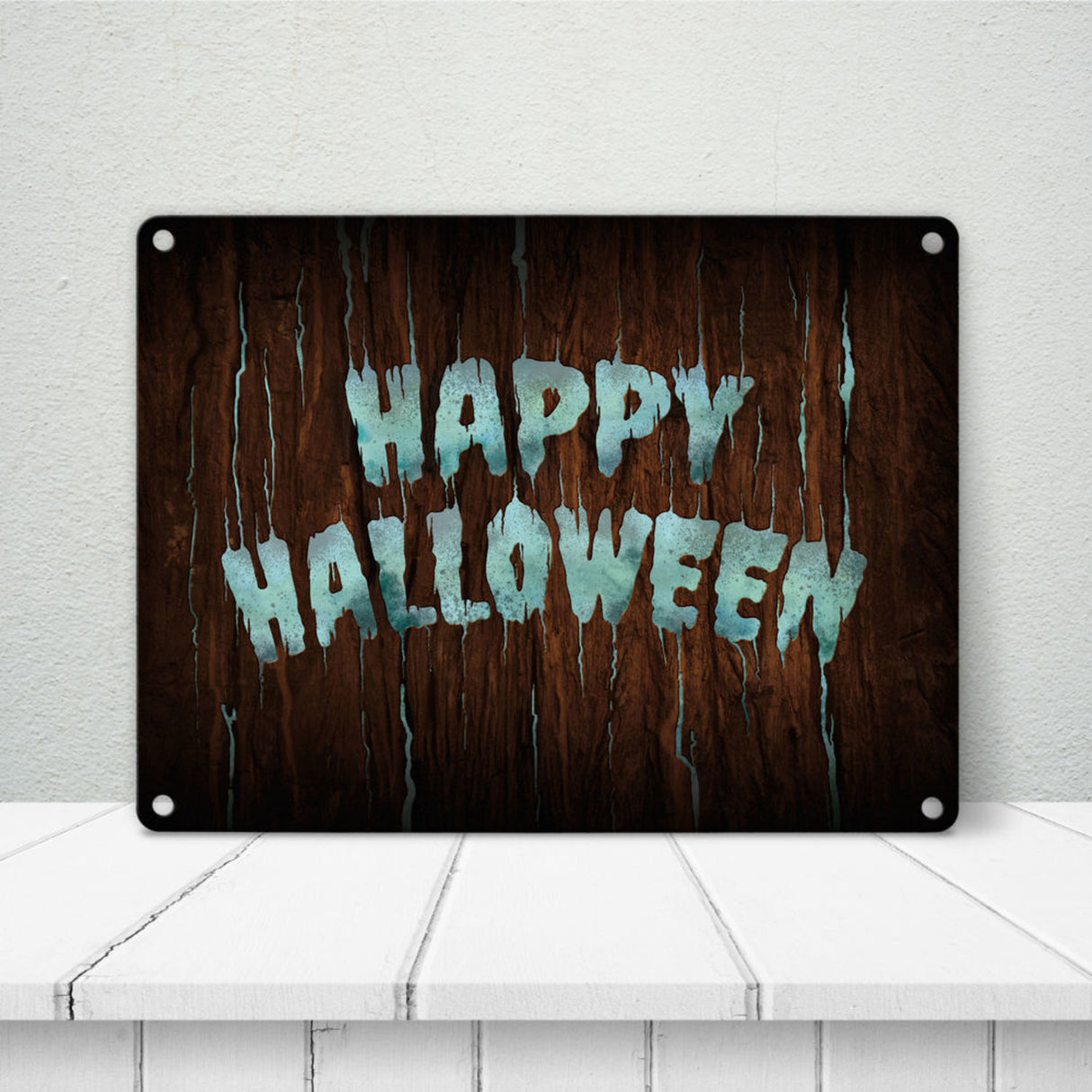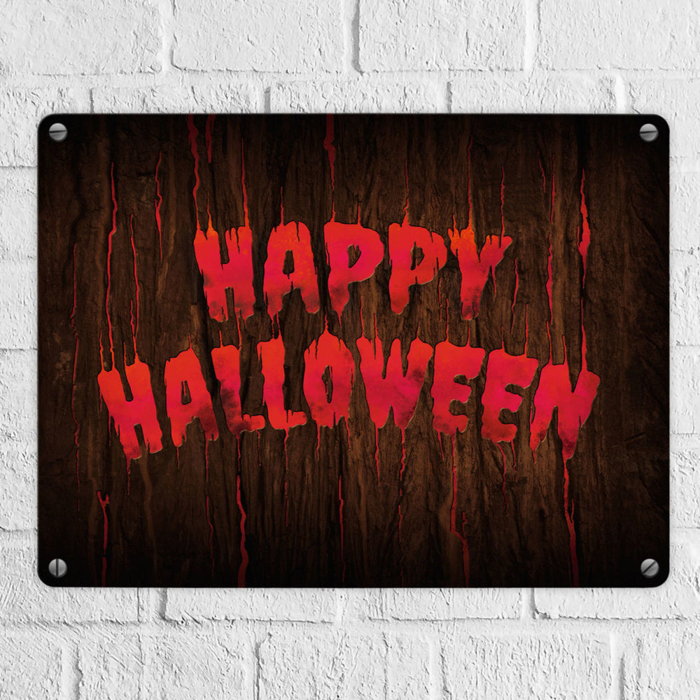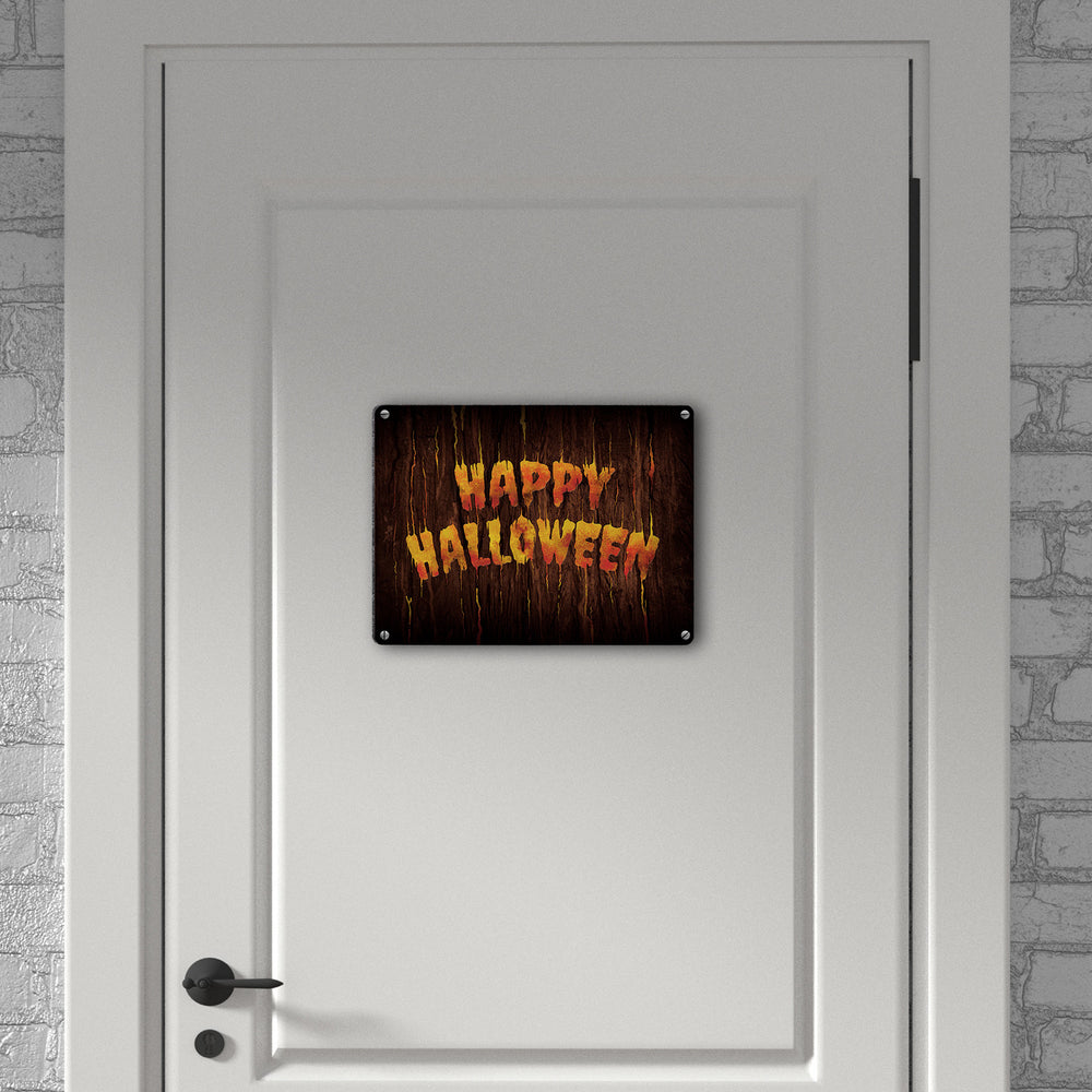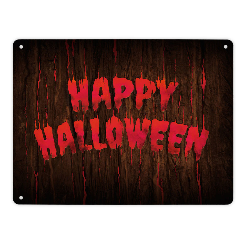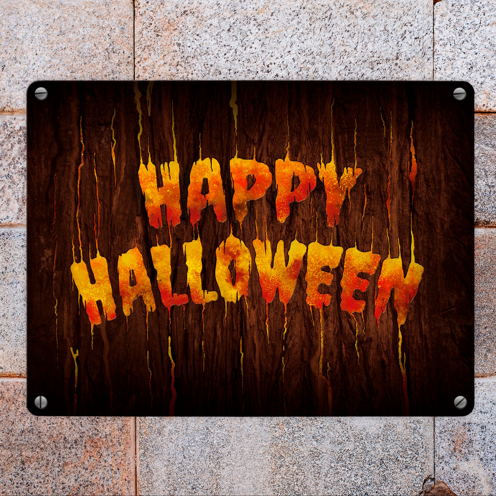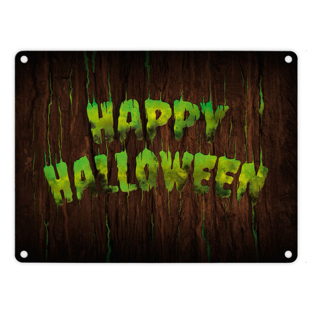 Happy Halloween Metallschild in Holz Optik Haustüre Türe Nacht Angst Hexe