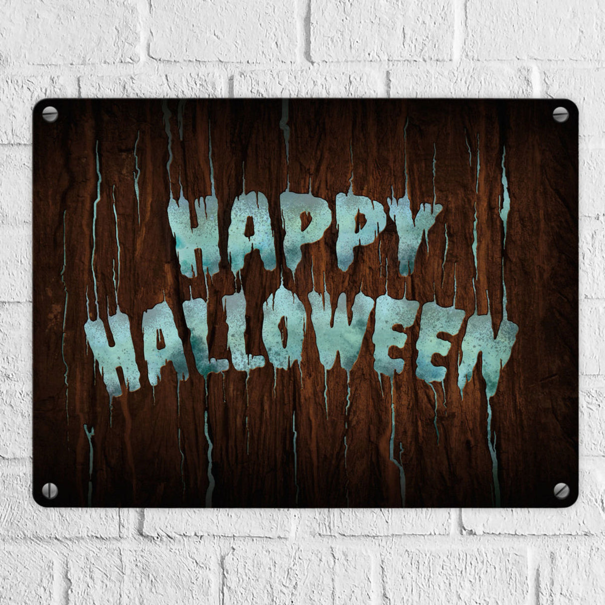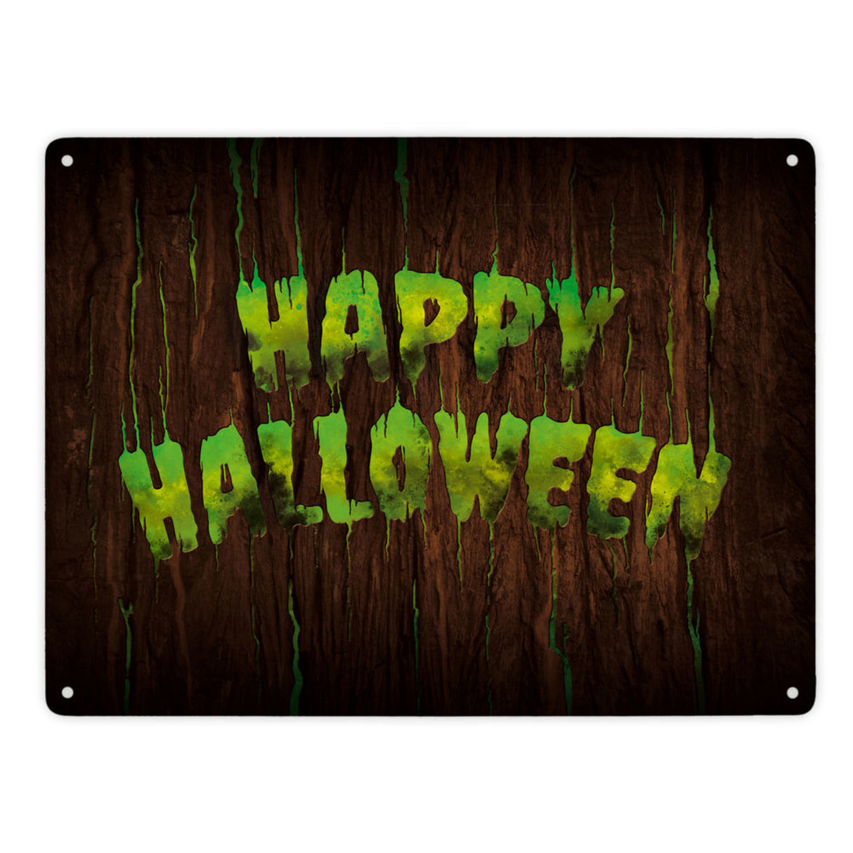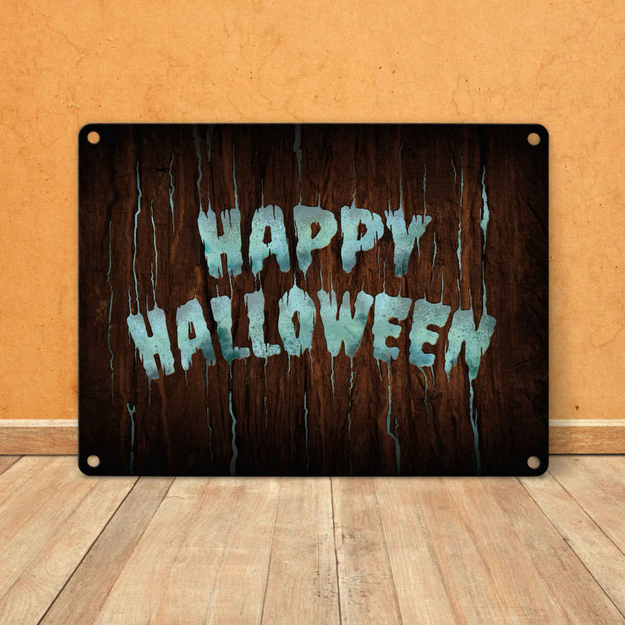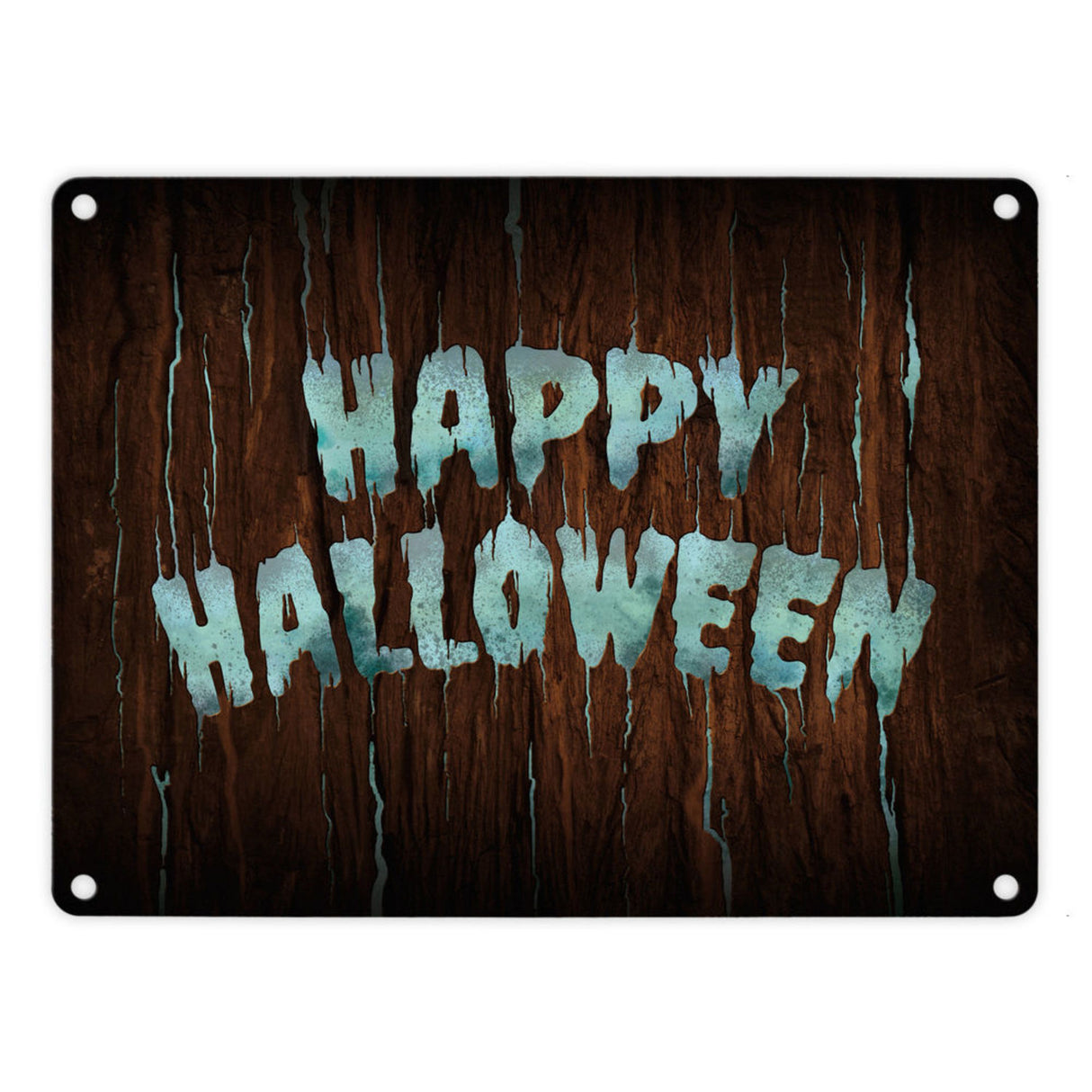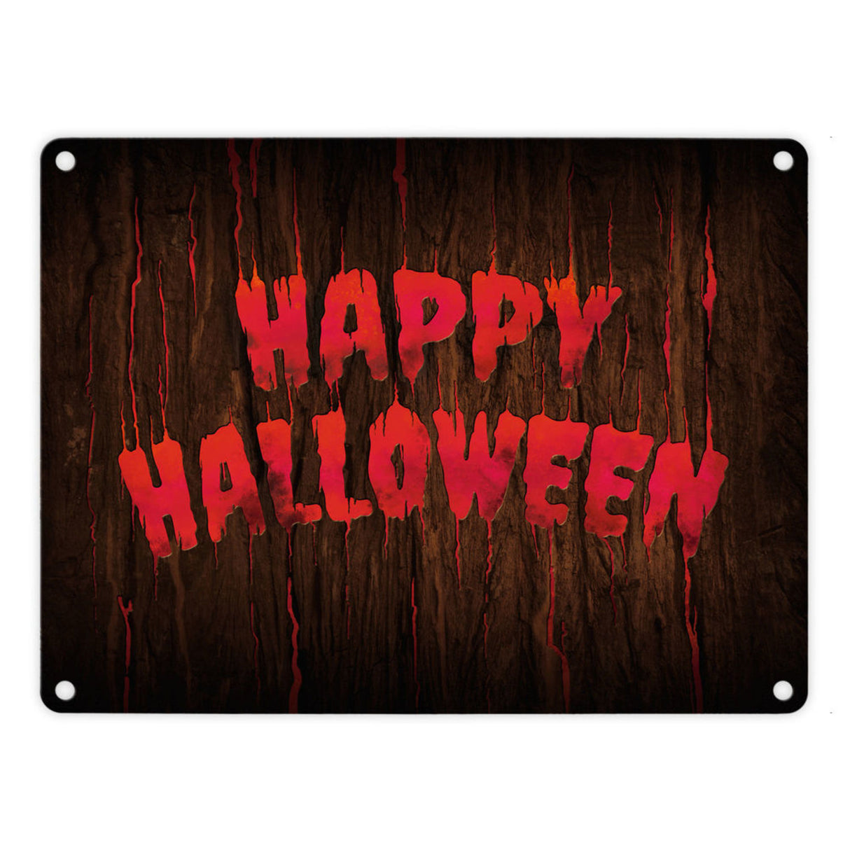 Happy Halloween Metallschild in Holz Optik Haustüre Türe Nacht Angst Hexe