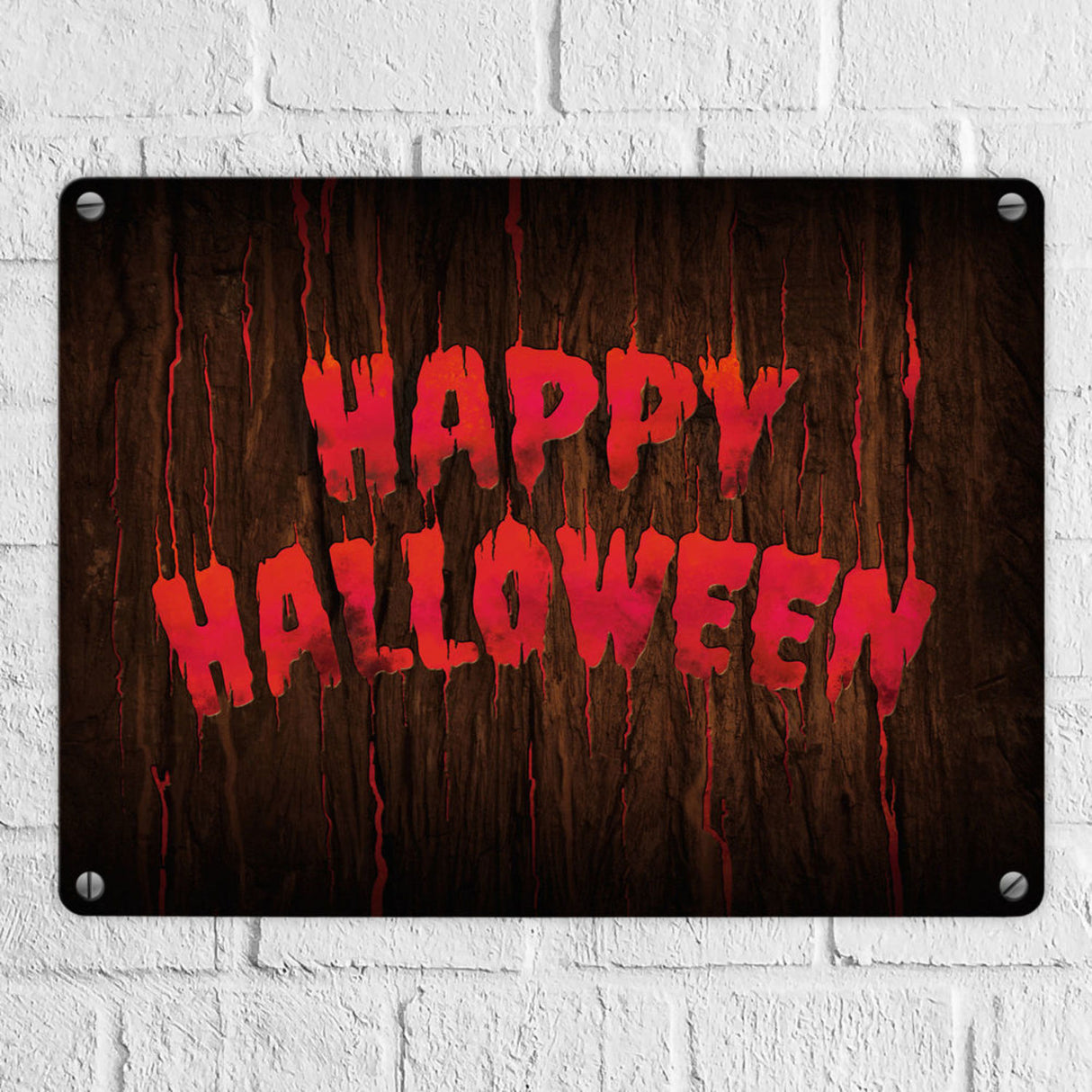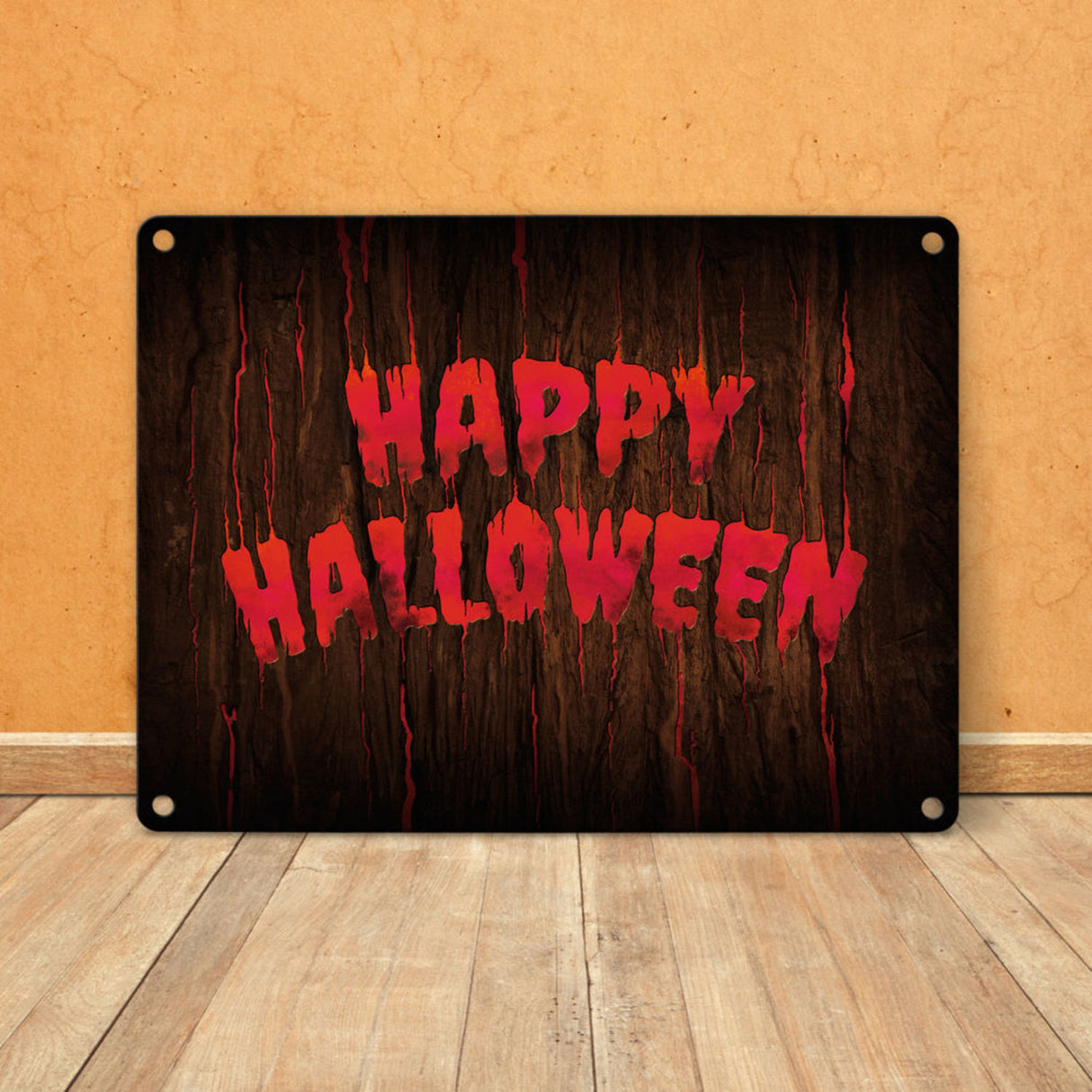Happy Halloween Metallschild in Holz Optik Haustüre Türe Nacht Angst Hexe - 15x20 cm / Feuerrot ist auf Lager und wird versandt, sobald es wieder verfügbar ist