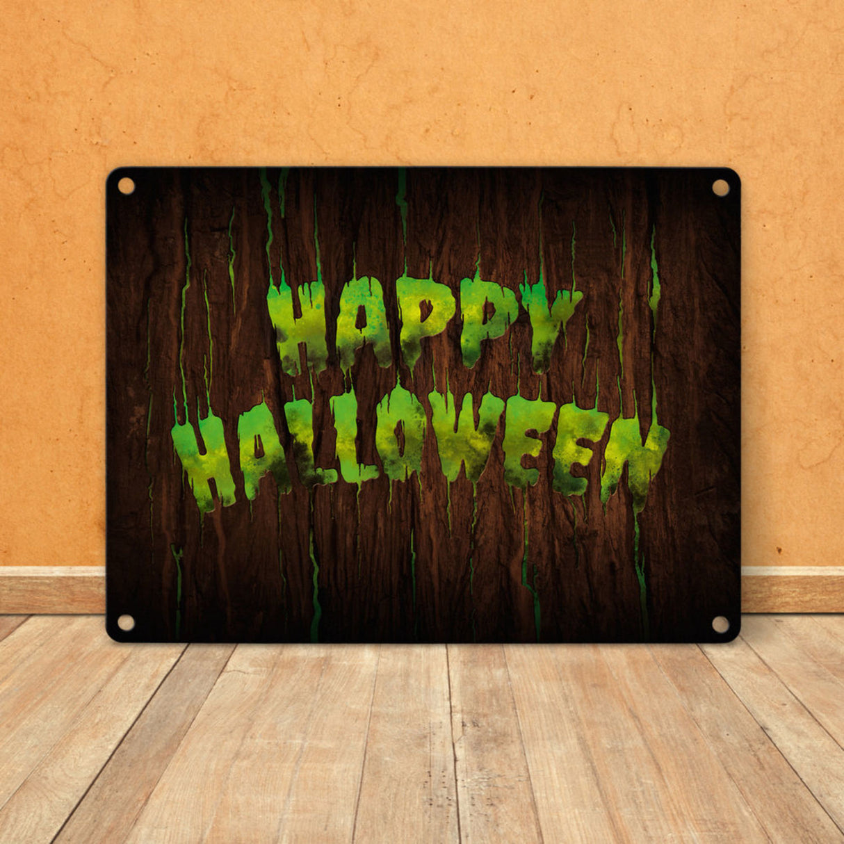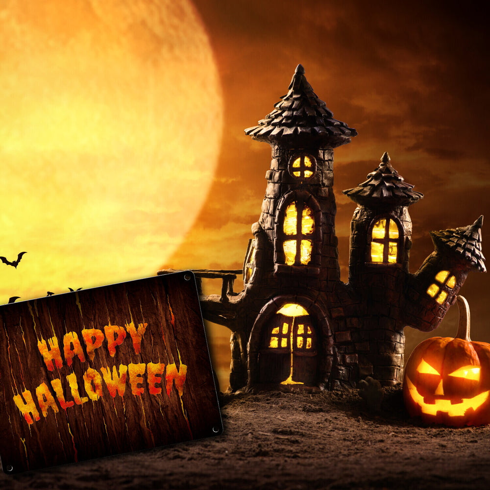 - 1x Happy Halloween Metallschild in Holz Optik Haustüre Türe Nacht Angst Hexe in der gewählten Größe