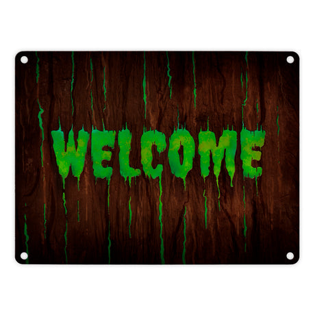 Welcome Metallschild in Holz Optik Halloween Teufel Hölle Kind Kinder Nacht