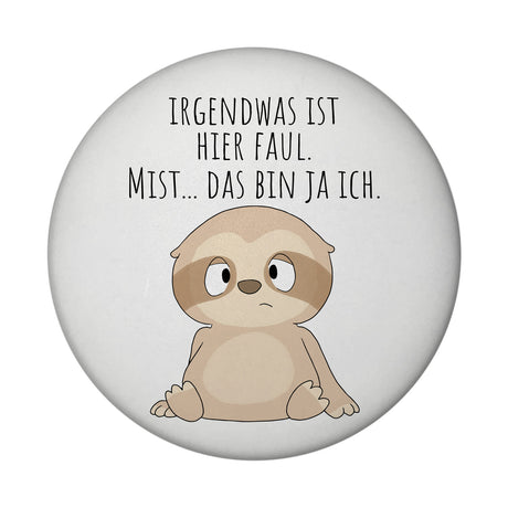 Faultier Magnet rund rund mit Spruch Hier ist etwas faul - ich