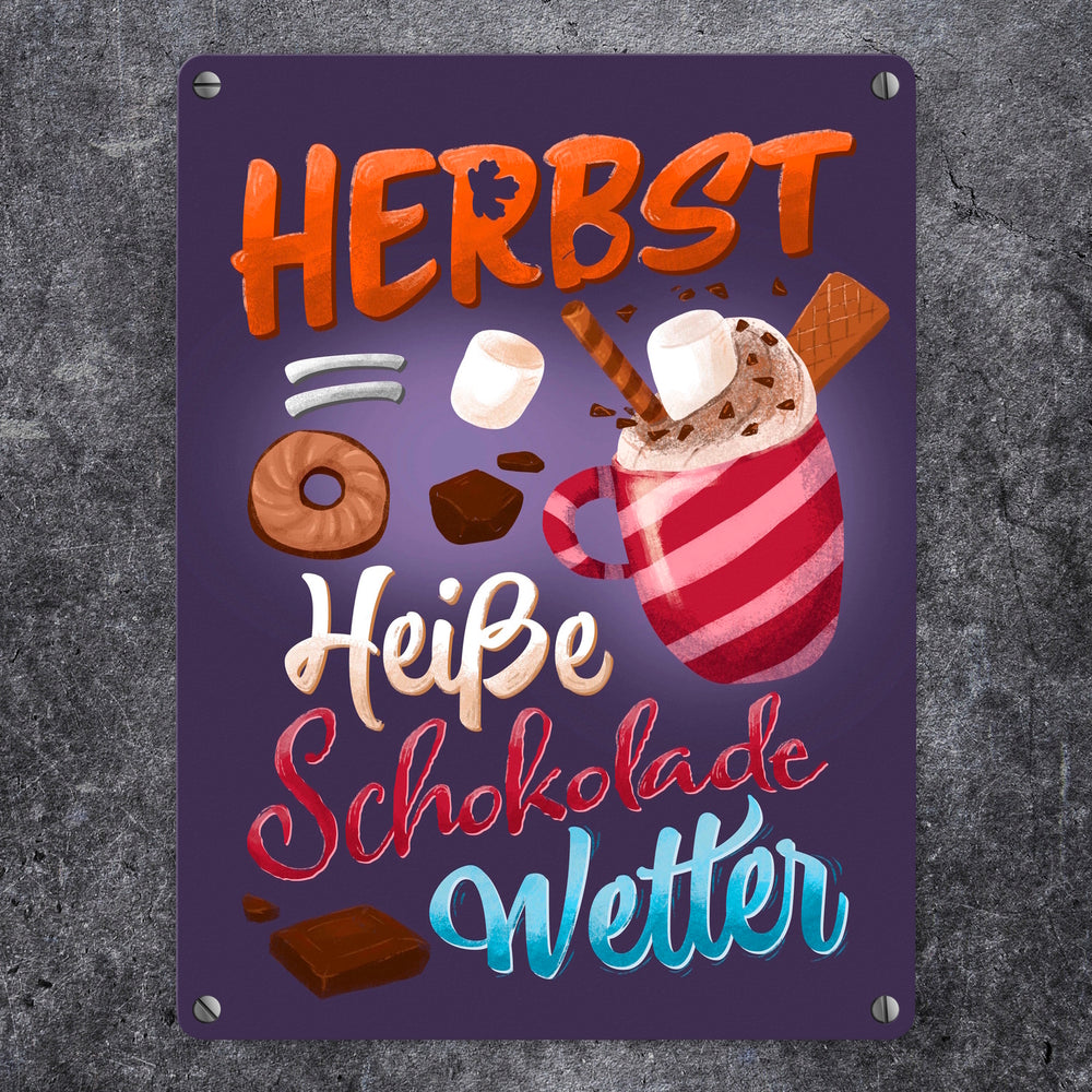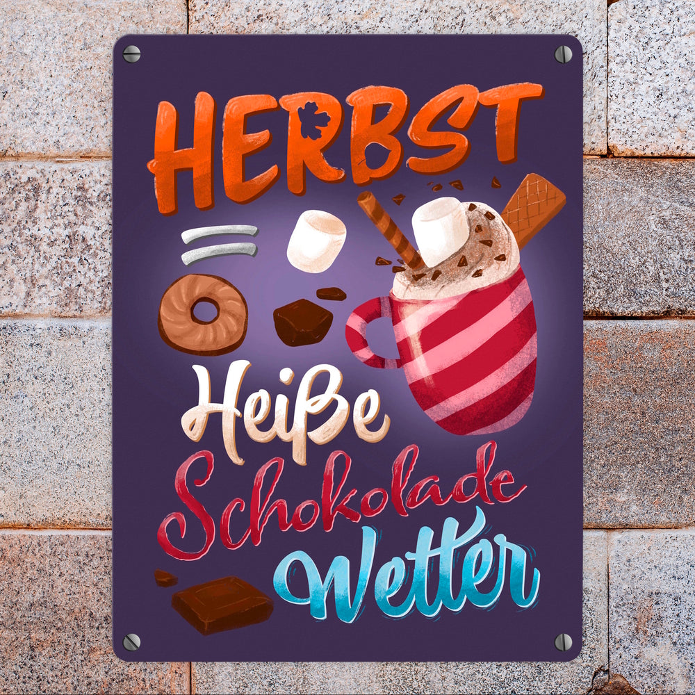 - 1x Herbst = Heiße Schokolade Wetter Metallschild in der gewählten Größe