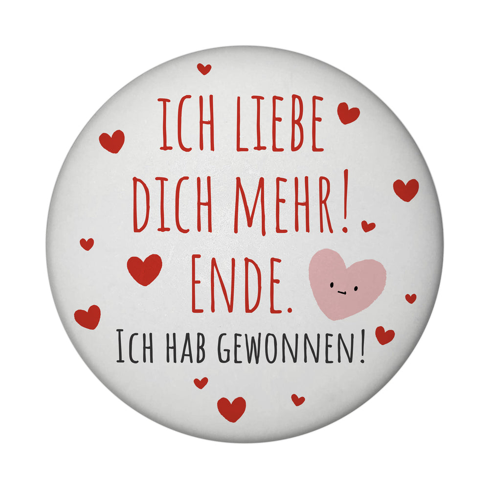 Herzen Magnet rund rund mit Spruch Ich liebe dich mehr! Ende.