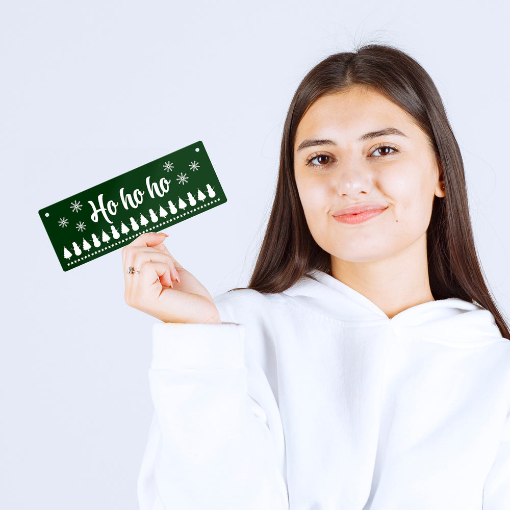 • 1x Ho ho ho Metallschild mit Weihnachtsmuster Motiv in der gewählten Größe