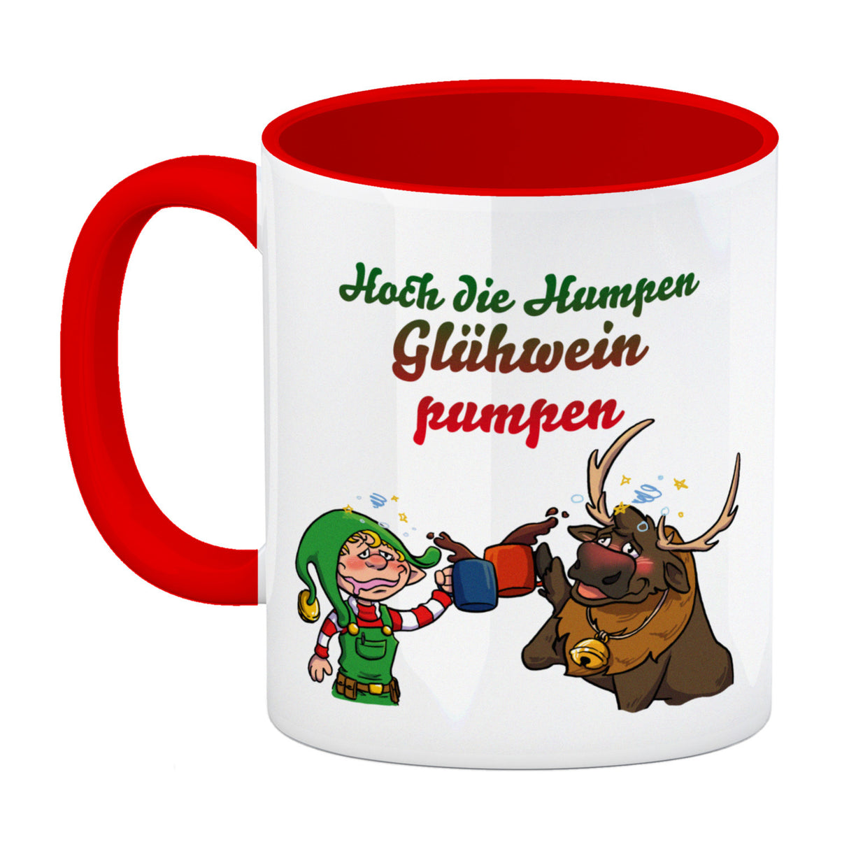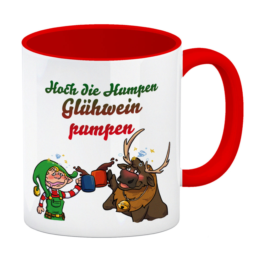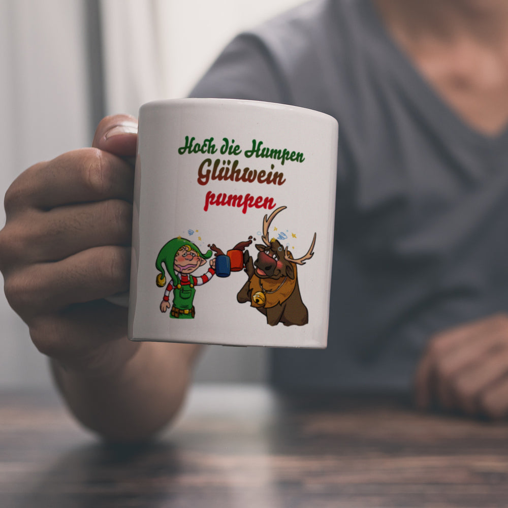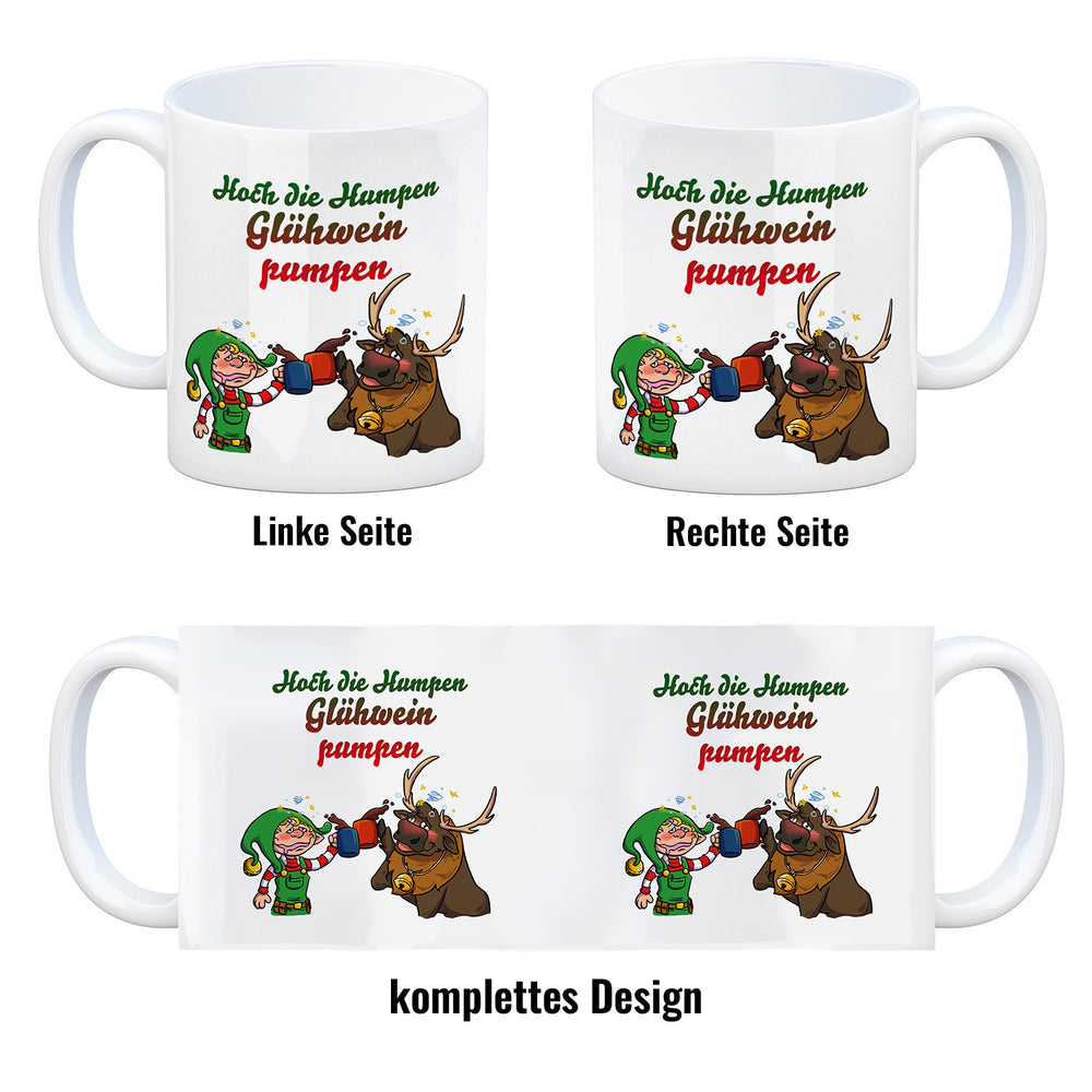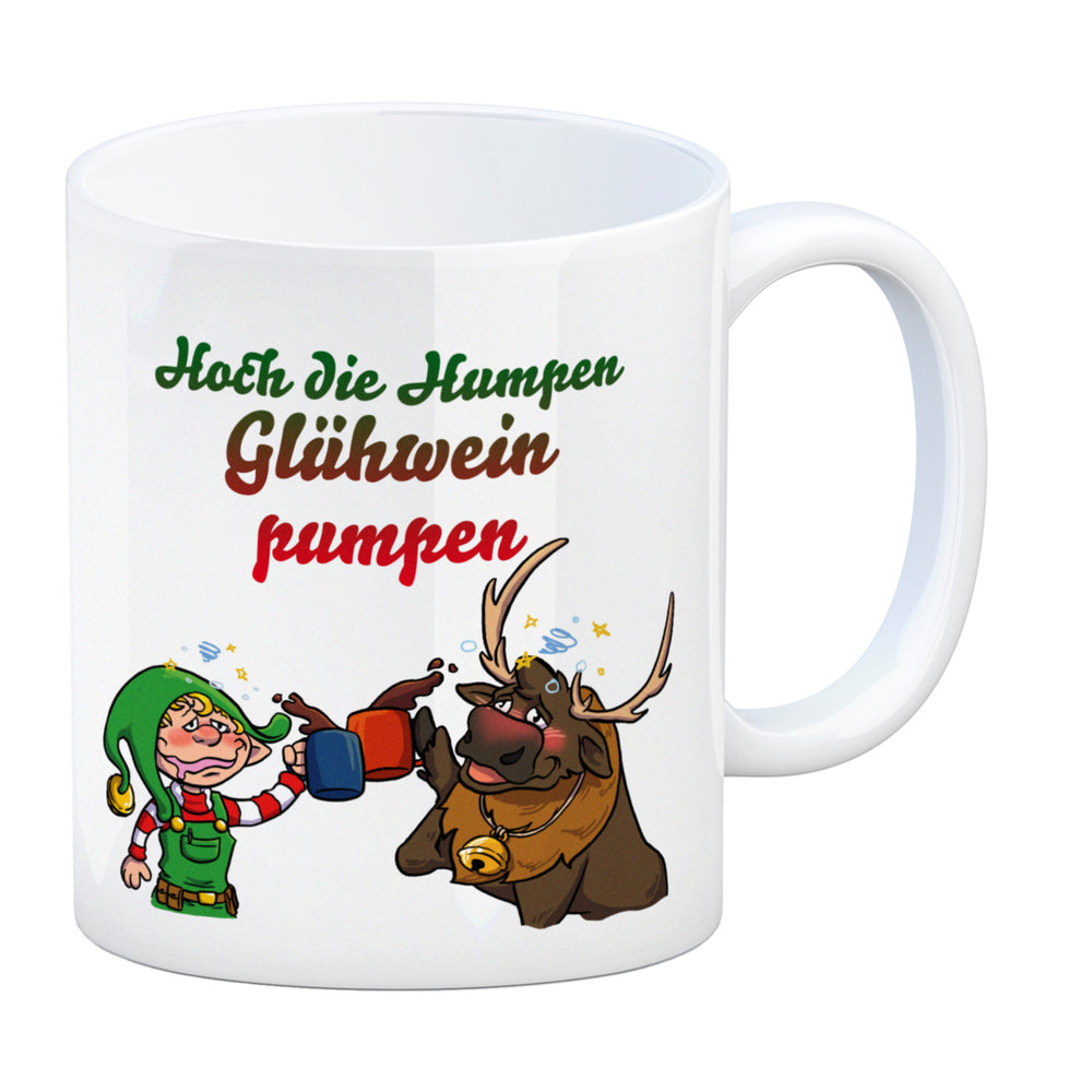 - 1x Hoch die Humpen Glühwein pumpen Kaffeebecher mit betrunkenem Rentier & Wichtel in der gewählten Ausführung