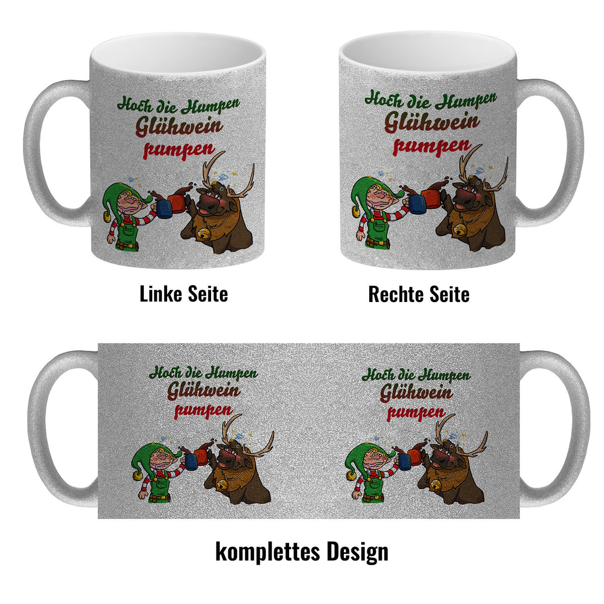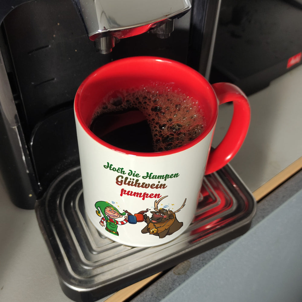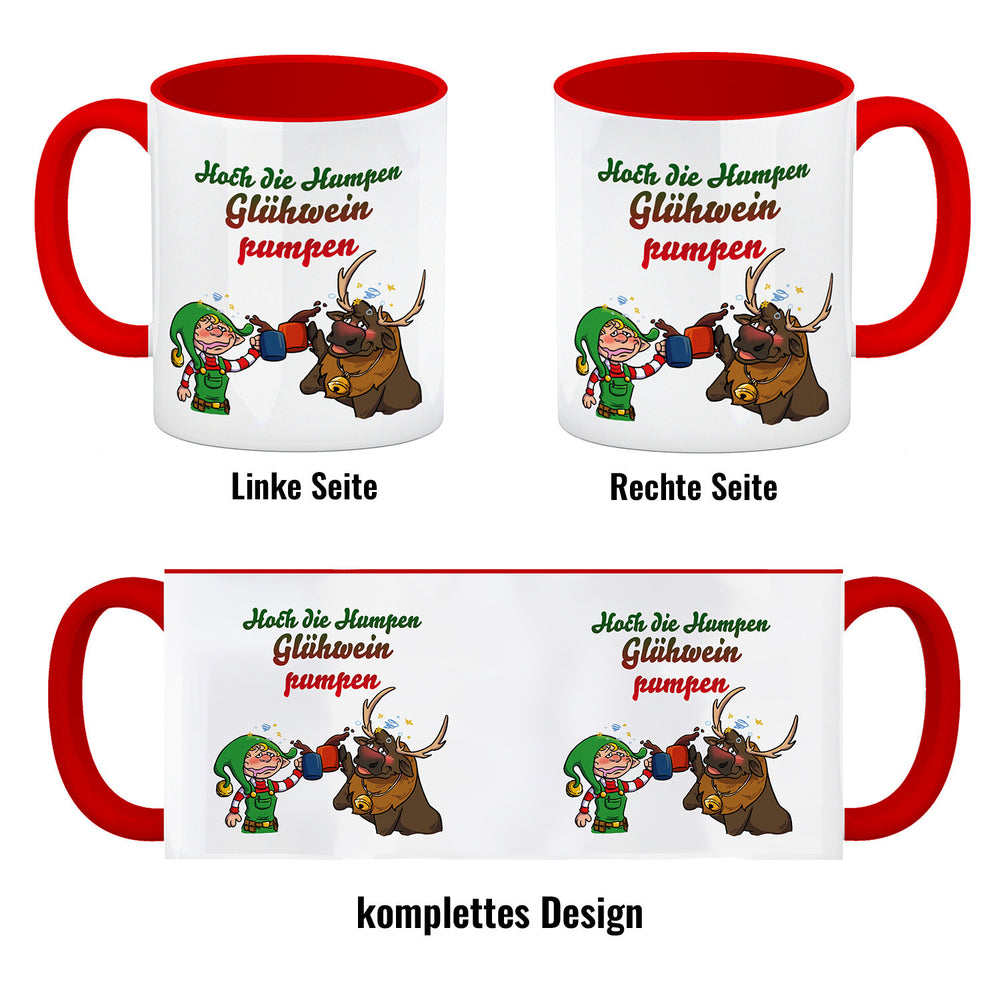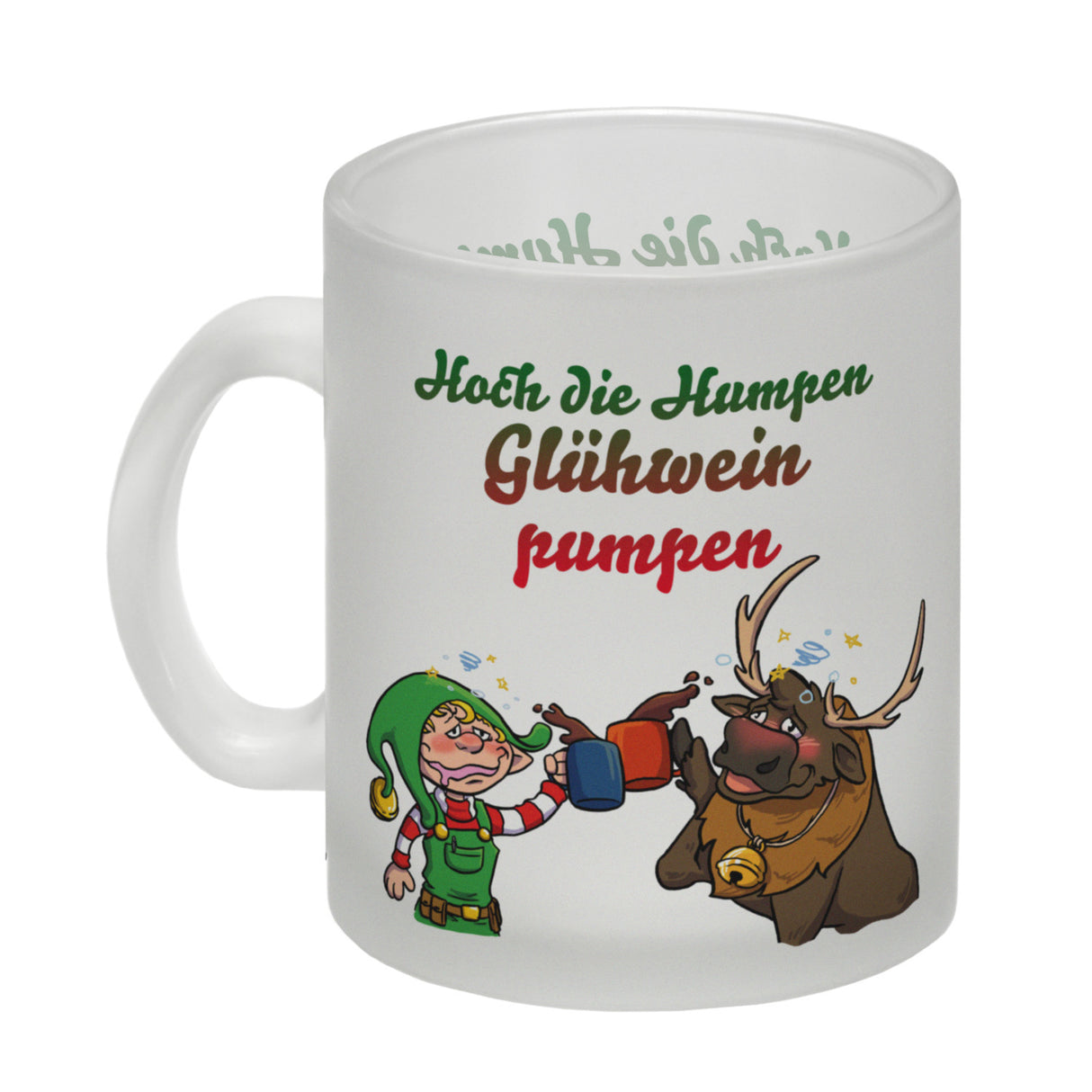 - 1x Hoch die Humpen Glühwein pumpen Kaffeebecher mit betrunkenem Rentier & Wichtel in der gewählten Ausführung
