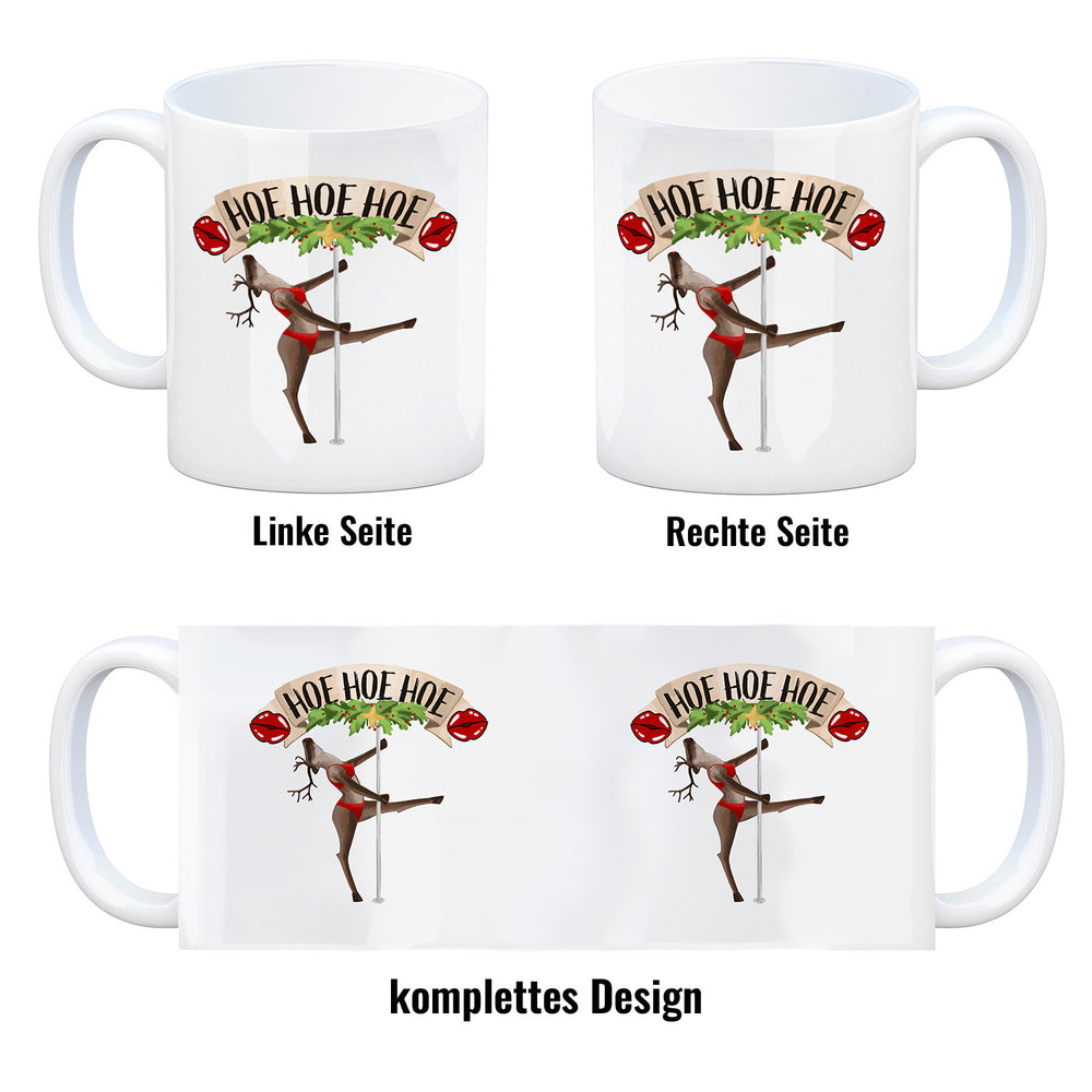 - 1x Hoe Hoe Hoe sexy Tänzerin Kaffeebecher zu Weihnachten in der gewählten Ausführung