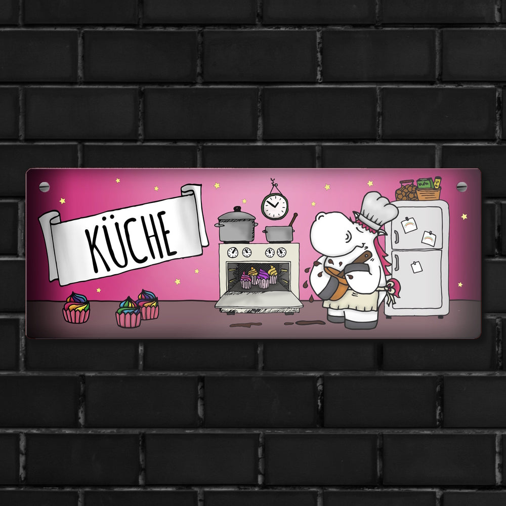 • Lieferumfang: Honeycorns Metallschild mit Einhorn Küche Motiv
