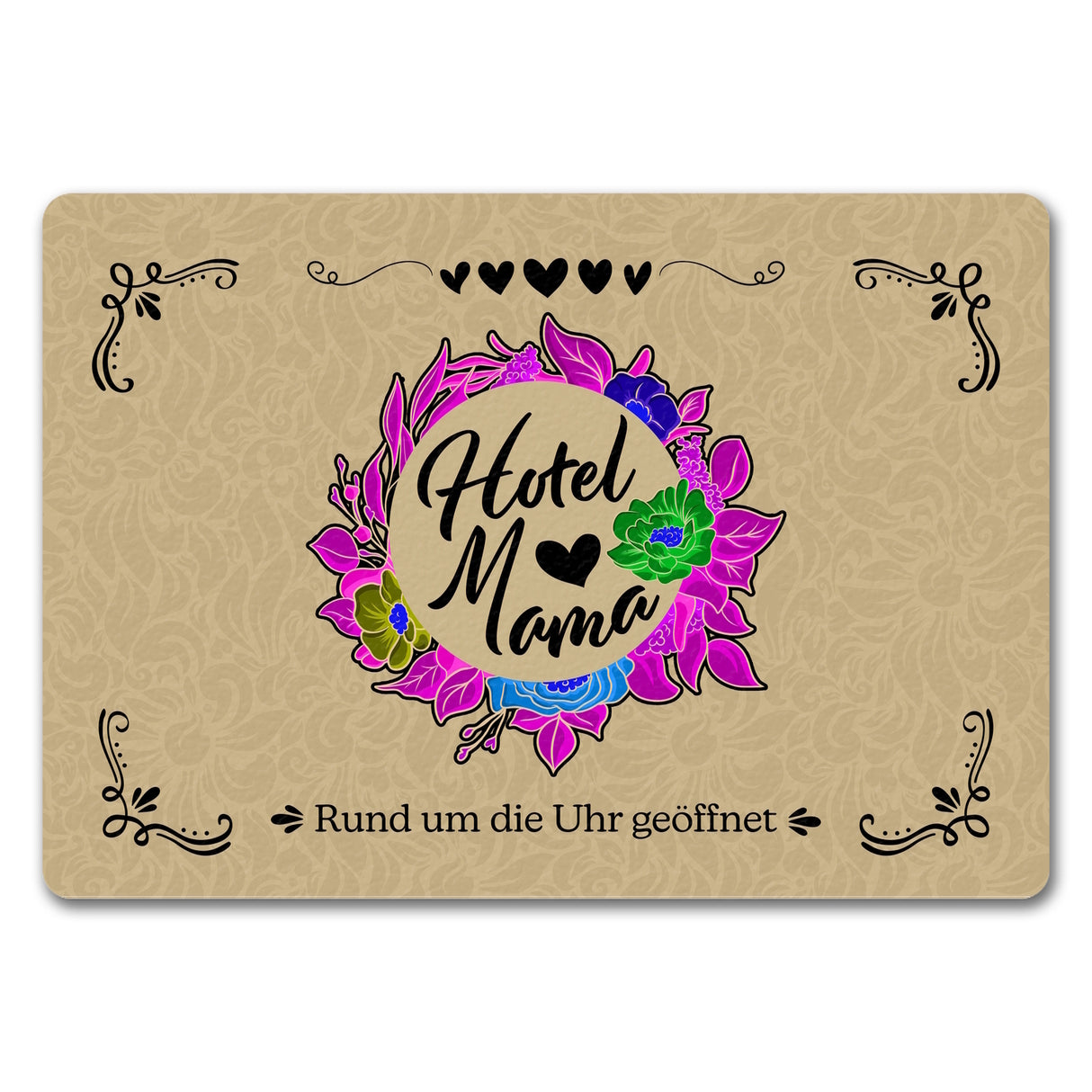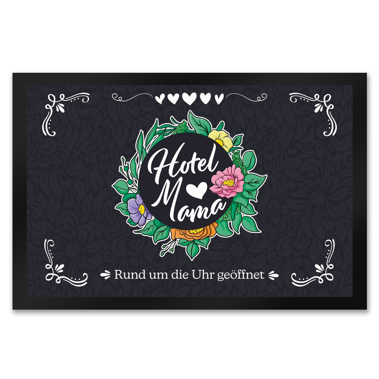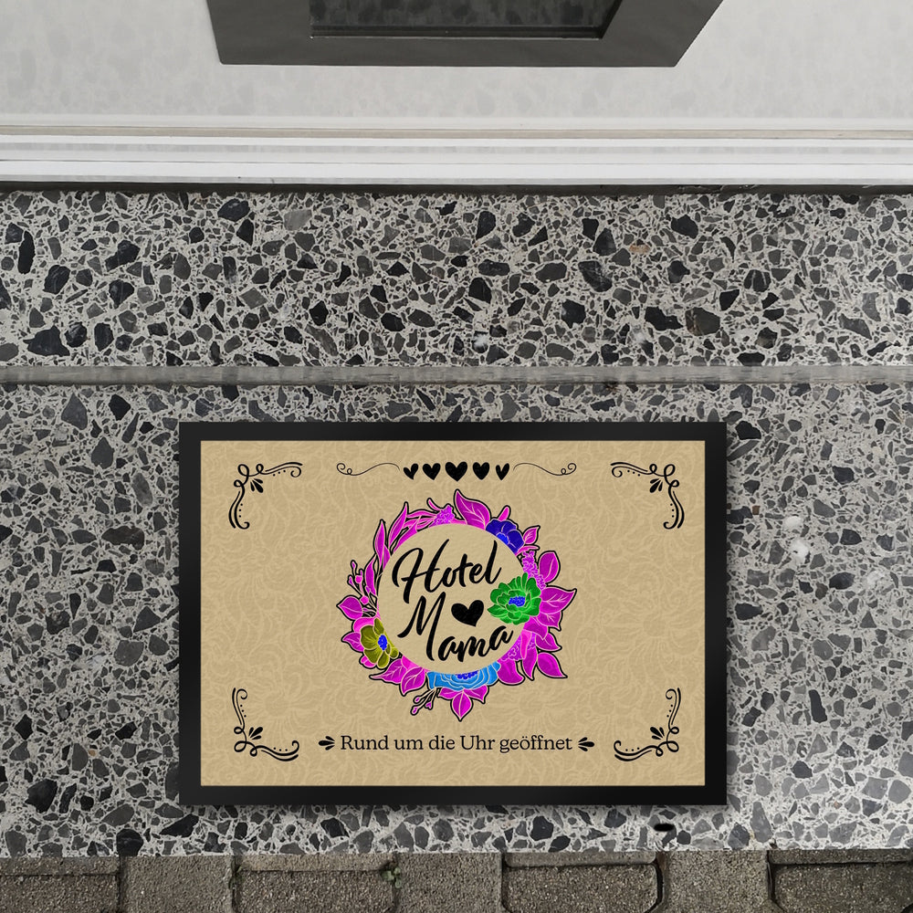 - 1x Hotel Mama Fußmatte mit floralen Mustern und Aufschrift in der gewählten Größe
