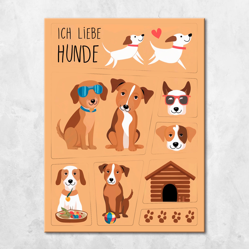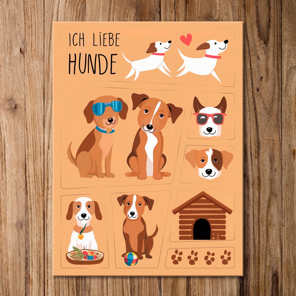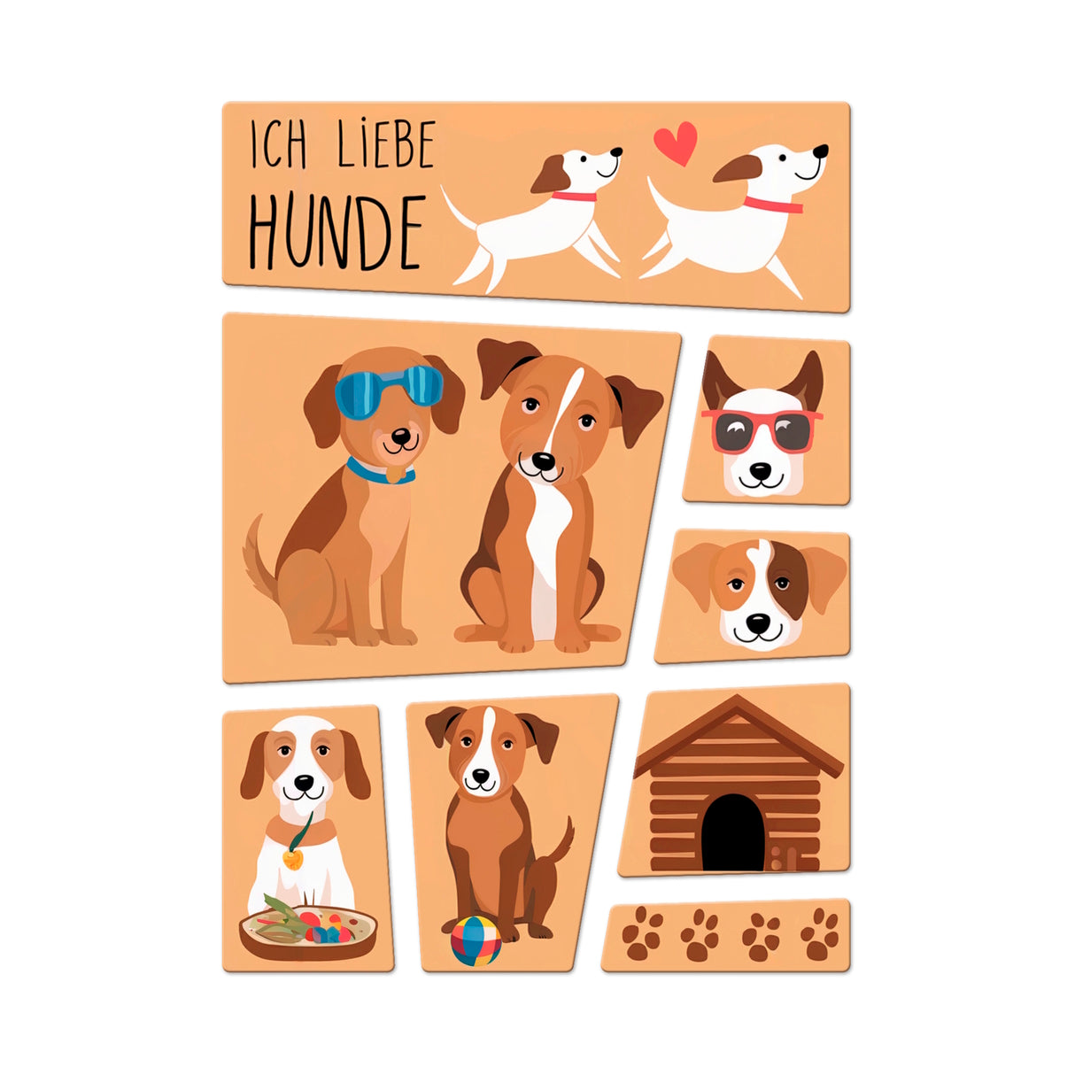 • Lieferumfang: 1x Hunde in verschiedenen Posen Kühlschrankmagnete-Set - Ich liebe Hunde