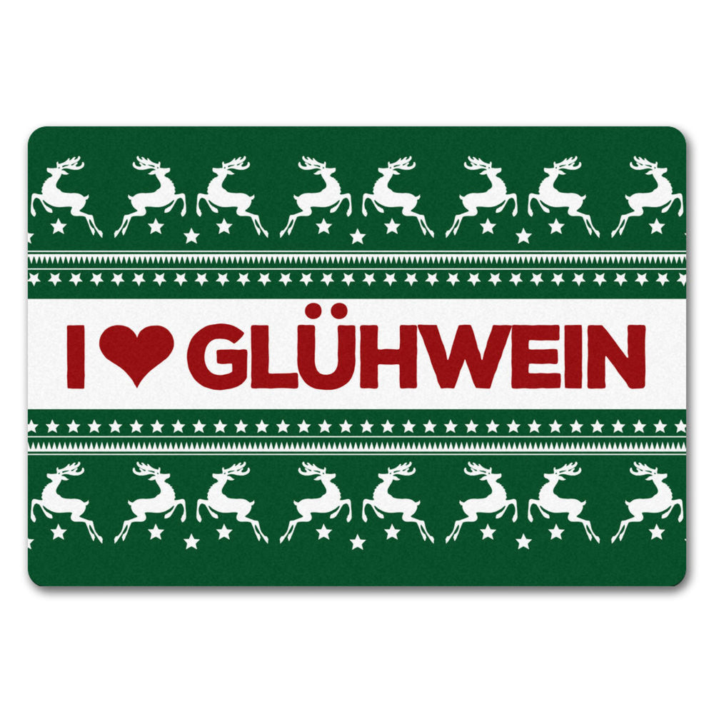 I love Glühwein Fußmatte ohne Rand in grün mit Weihnachtsmuster Motiv