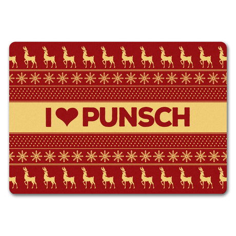 I love Punsch Fußmatte ohne Rand in rot mit Weihnachtsmuster Motiv