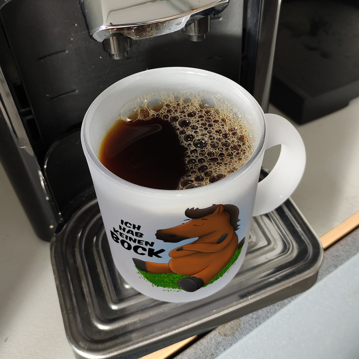- 1x Ich hab keinen Bock Kaffeebecher mit Pferde Motiv in der gewählten Ausführung