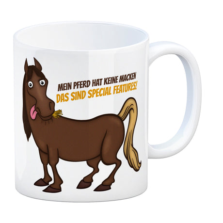 Kaffeebecher mit Pferde Motiv und Spruch: Mein Pferd hat keine Macke. Das ...