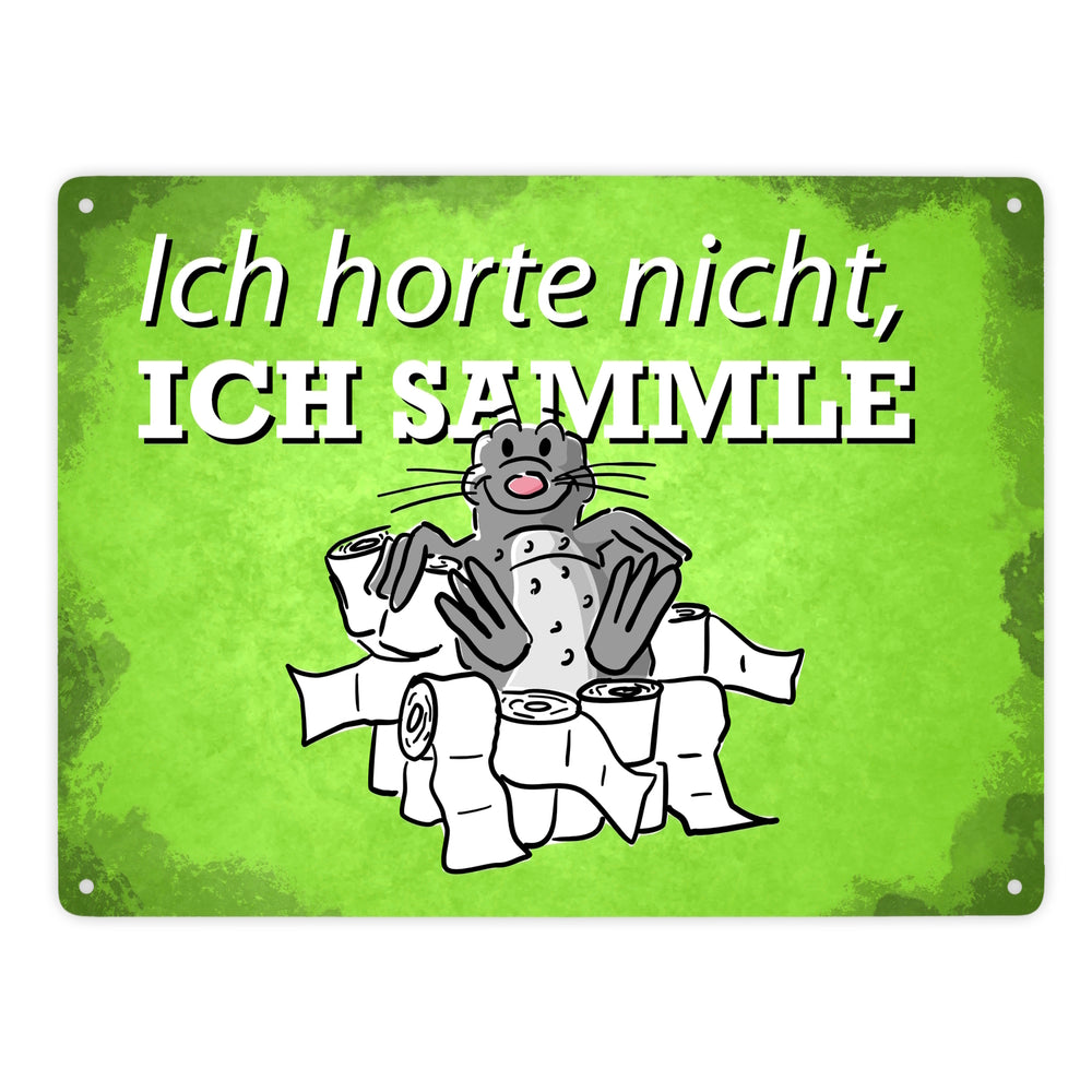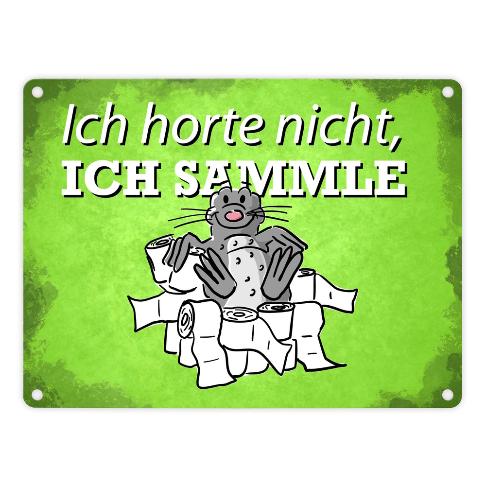 - 1x Ich horte nicht, ich sammle Metallschild mit Seeleopard auf Toilettenpapier in der gewählten Größe