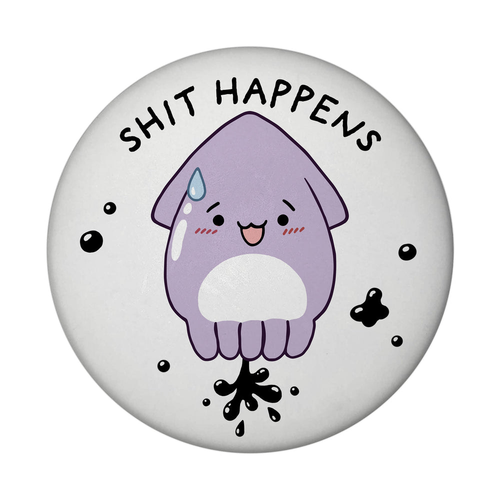 - Der Jelly Friends Tintenfisch Magnet ist rund und zeigt einen süßen Tintenfisch im kawaii-Stil. Der Magnet trägt den Spruch: "Shit happens". Perfekt für Teenager, die eine lustige Erinnerung daran brauchen, dass nicht immer alles glatt läuft.