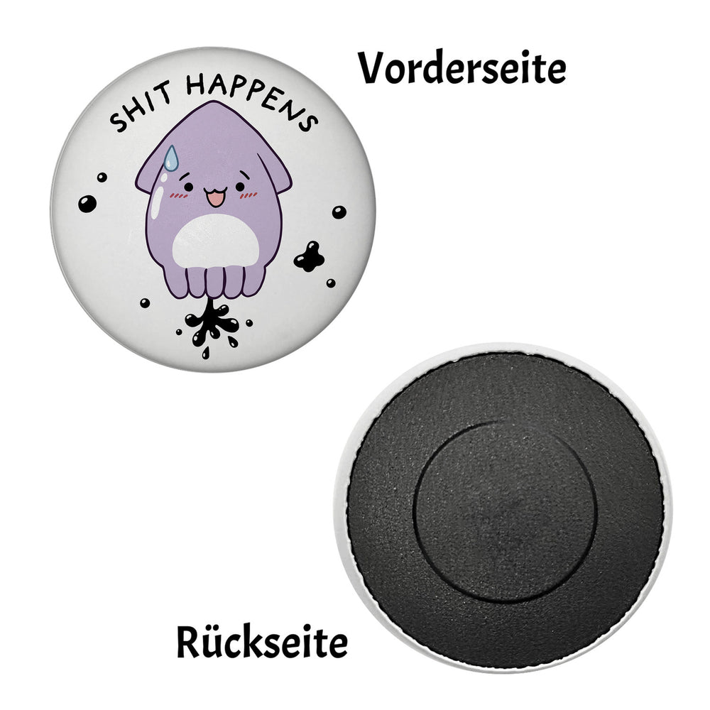 - 1x Jelly & Friends Tintenfisch Magnet rund mit Spruch Shit happens in der gewählten Ausführung