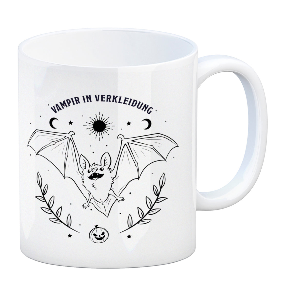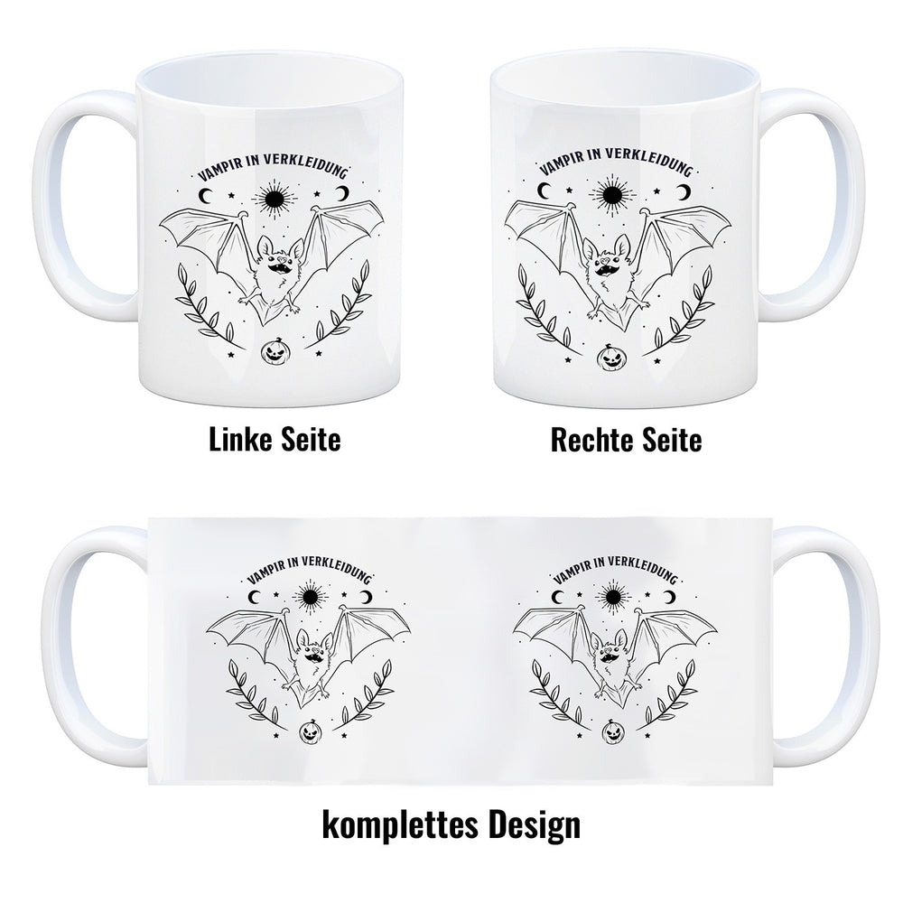 - 1x Kaffeebecher mit Fledermaus Motiv und Spruch - Vampir in Verkleidung in der gewählten Ausführung