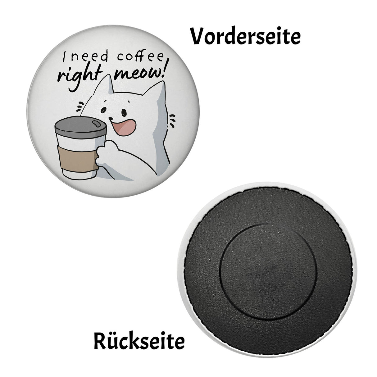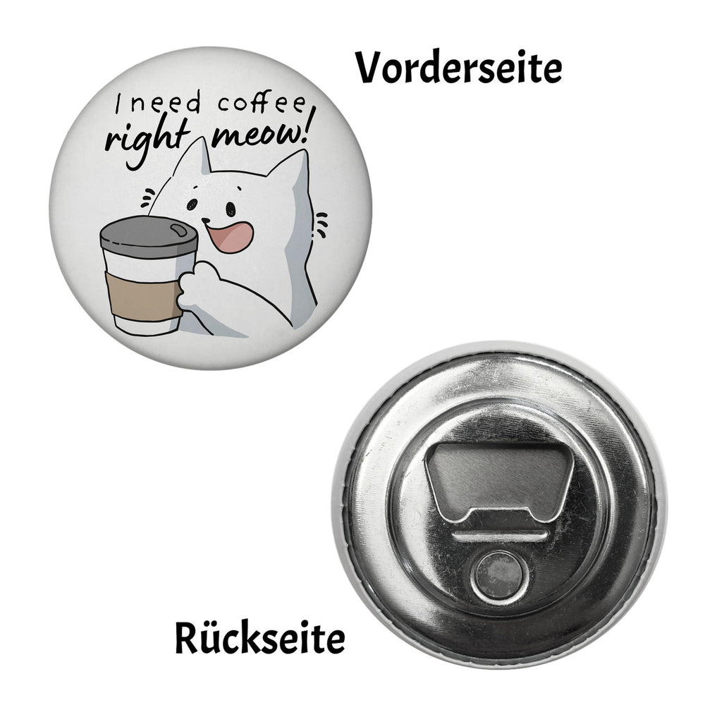 • 1x Katze Magnet rund rund mit Spruch I need coffee right meow in der gewählten Ausführung