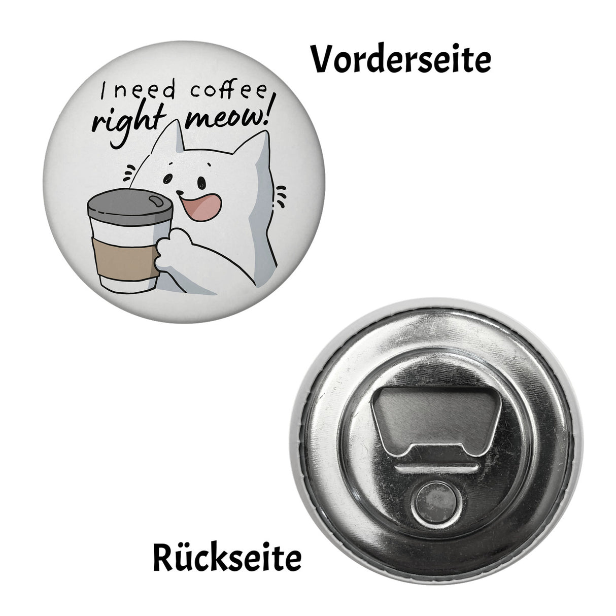 Hast du eine Freundin oder einen Freund, die morgens nicht ins Plaudern kommen, bevor der erste Schluck Kaffee die Lippen küsst? Der I need coffee right meow Magnet ist die perfekte Mischung aus Charme, Witz und Niedlichkeit, die jeden Katzen- und Kaffeeliebhaber um die Pfote wickelt. Mit einer runden Form, die an eine gemütliche Kaffeebohne erinnert, und einer Katze, die mit großen Augen um ihren Morgenkaffee bettelt, wird dieser Magnet die Herzen im Sturm erobern und für tagtägliches Schmunzeln sorgen.Dieser magnetische Lebensretter kann mehr als nur gut aussehen; er hält deine Notizen, Rezepte oder sogar den Zahlungszettel für die nächste Kaffeebestellung fest an ihrem Platz. Stell dir vor, du wachst auf, stolperst verschlafen in die Küche und wirst von dieser Katze erinnert: Es ist right meow Zeit für Kaffee! Er ist nicht nur in einer schicken Standardvariante erhältlich – nein, auch als hilfreicher Flaschenöffner für alle, die nach ihrem Kaffee vielleicht ein kühles Bier genießen möchten. In Deutschland gefertigt, garantiert jeder Magnet eine Premium-Qualität und jede Menge Meow -mentum in deiner Küche, dank seines starken Magneten. Hol dir den I need coffee right meow Magnet als quirlige Bereicherung für deinen Alltag oder als Geschenk für deinen liebsten Koffein-Fanatiker!