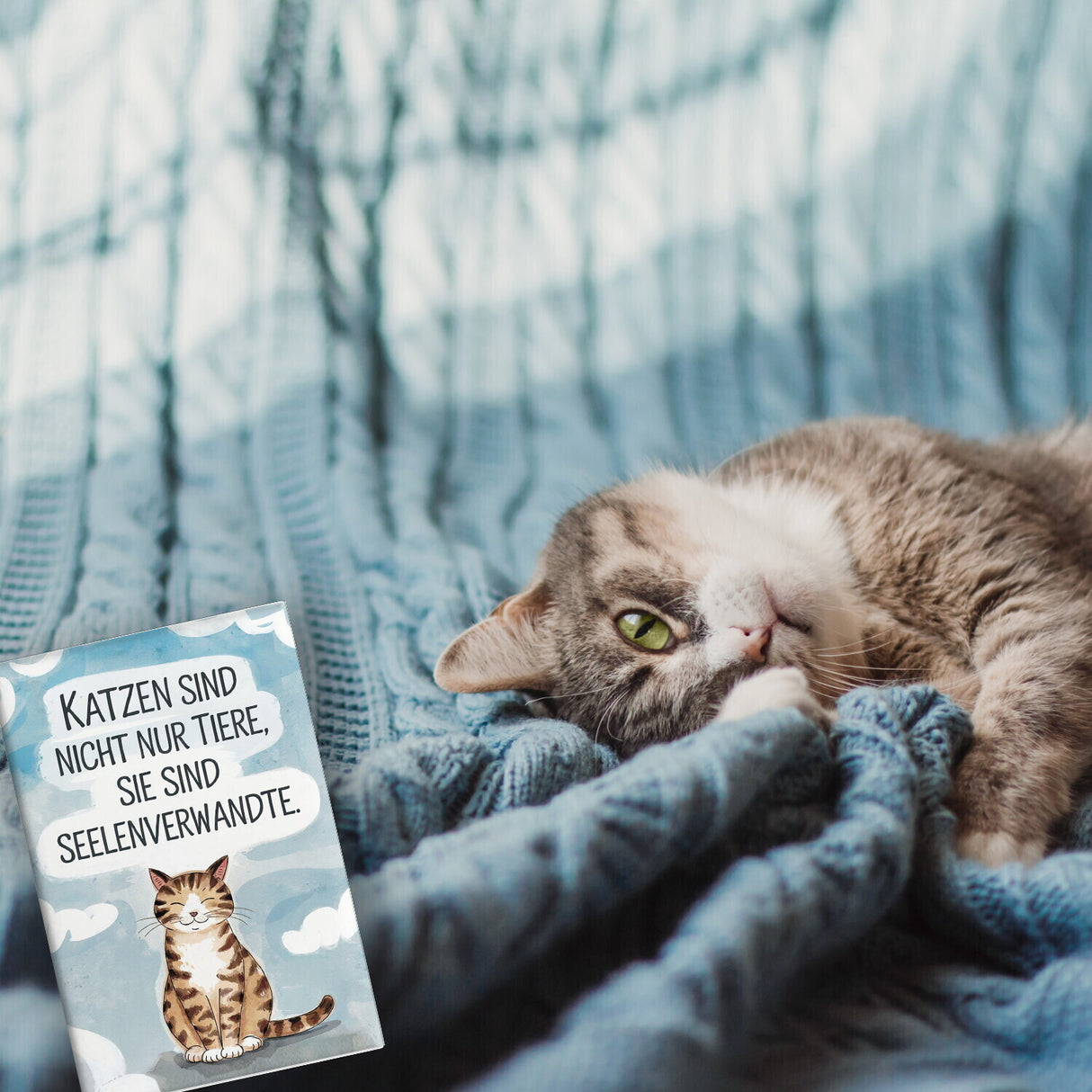 • Unser Magnet zeigt eine zufriedene Katze und den inspirierenden Spruch: "Katzen sind nicht nur Tiere, sie sind Seelenverwandte." Dieser liebevoll gestaltete Magnet fängt die besondere Verbindung zwischen Mensch und Katze ein und erinnert an die magische Welt der Katzenliebe.