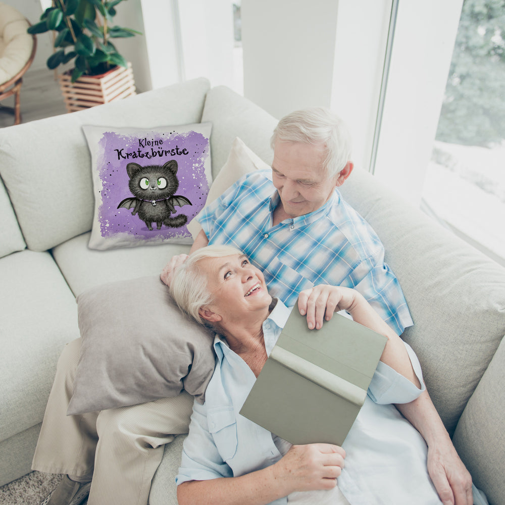 Kleine Kratzbürste Kissen mit Fledermaus-Katze