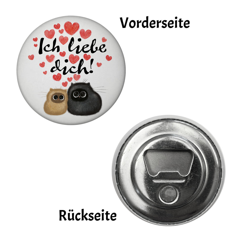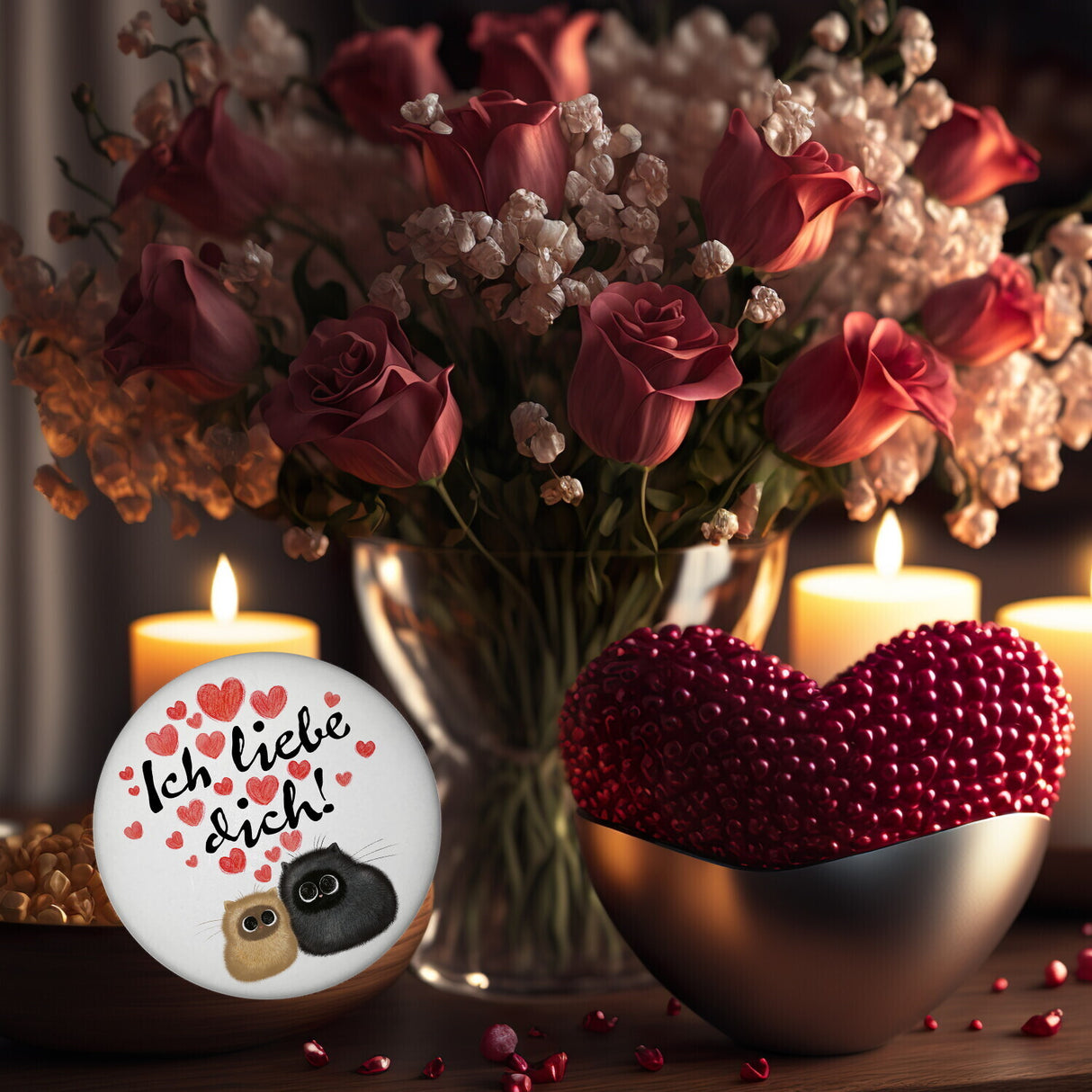 • 1x Knuffige Katzen Magnet rund rund mit Spruch Ich liebe dich in der gewählten Ausführung