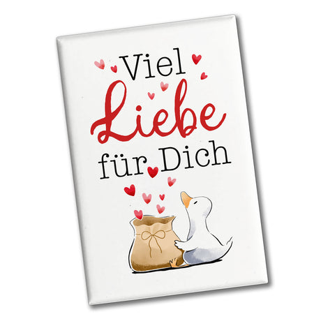 Ente Souvenir Magnet eckig mit Spruch Viel Liebe für dich