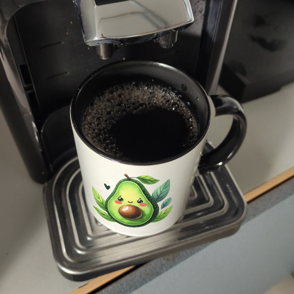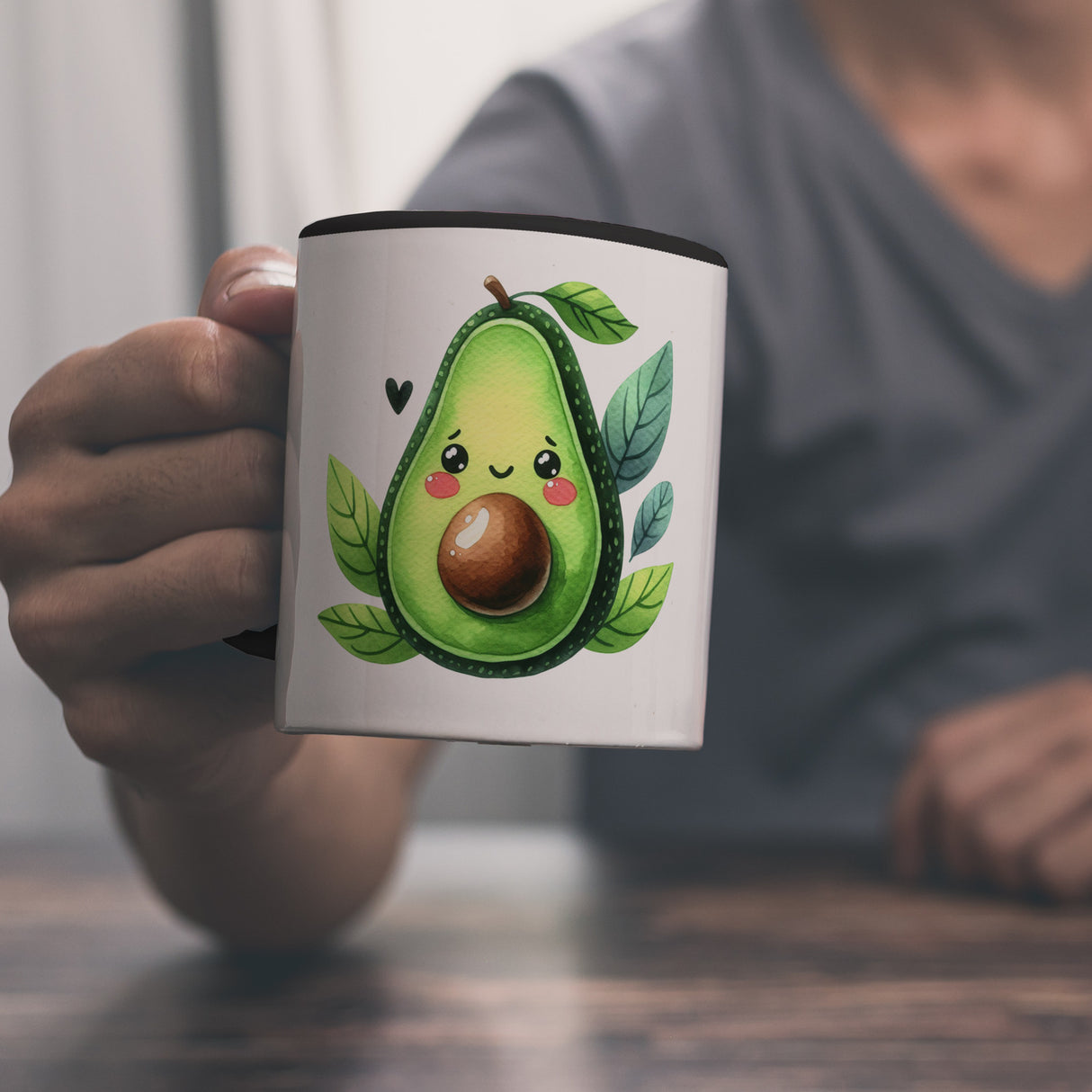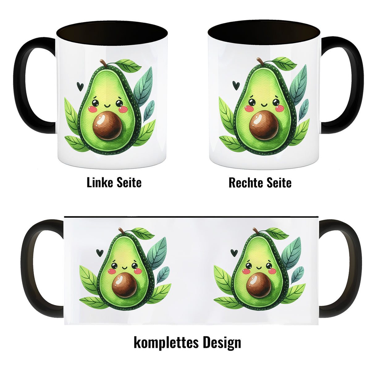 Avocado im Kawaii-Stil Kaffeebecher mit Spruch Sei du selbst oder Avocado