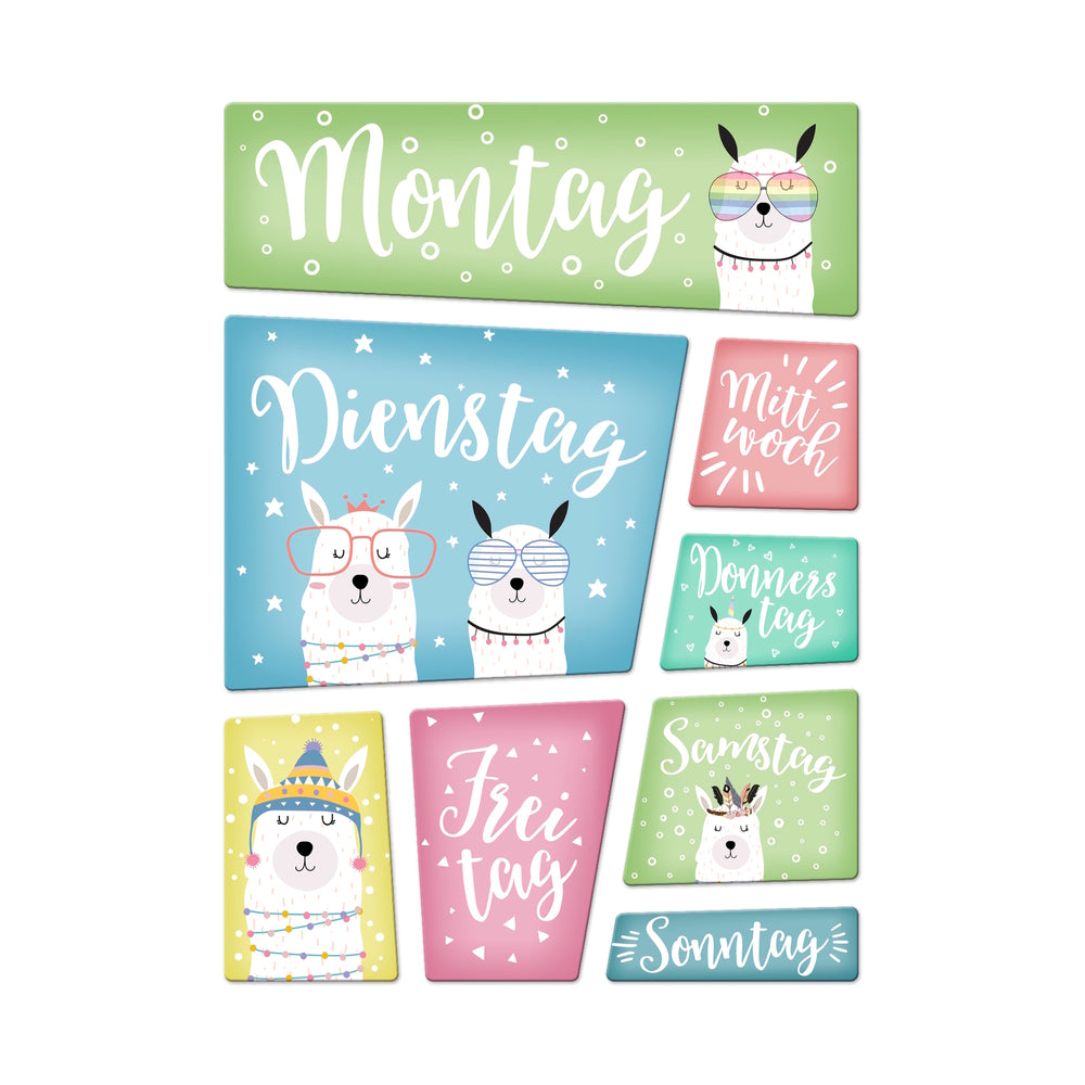 Lama Wochentage Kühlschrankmagnete im 8er Set