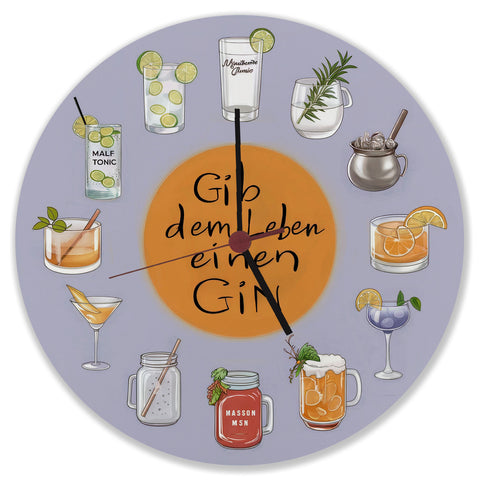 Gin Tonic Variationen Wanduhr - Gib dem Leben Gin